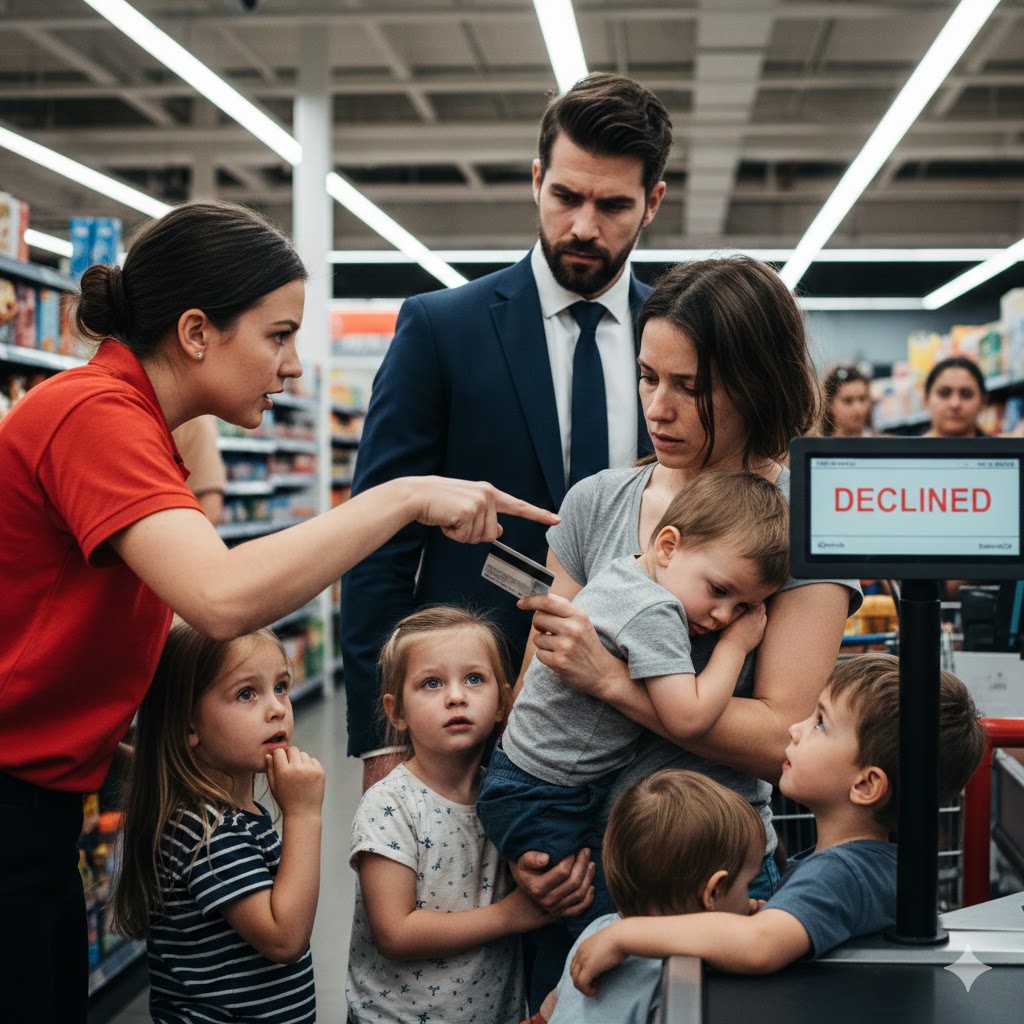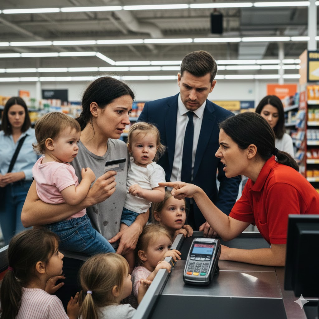 Heat rushed to Maria’s face in humiliation. The air felt thick, suffocating. She sensed every pair of eyes on her, heard the impatient murmurs from the line behind. They felt like unseen blades cutting into her dignity. The children, until then unaware, picked up on the tension.