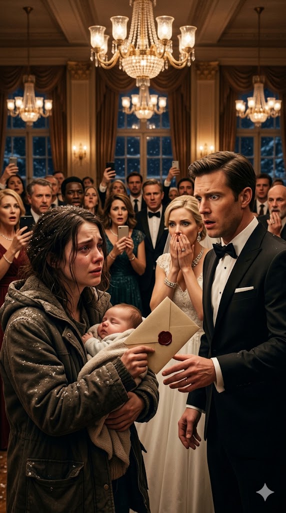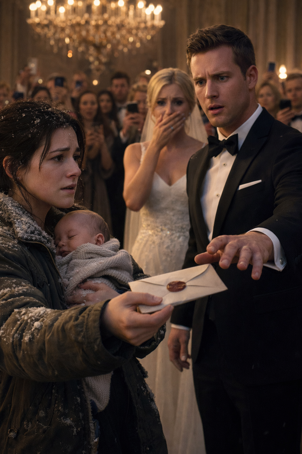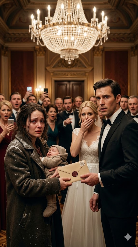 So that afternoon, at Mason’s glittering wedding, I stood at the back of the country club ballroom with Lily sleeping against my chest and a sealed envelope burning in my hand. Crystal chandeliers flashed above. Guests turned, first annoyed, then curious. Mason noticed me before Claire did. His smile faltered so quickly it almost looked like fear.