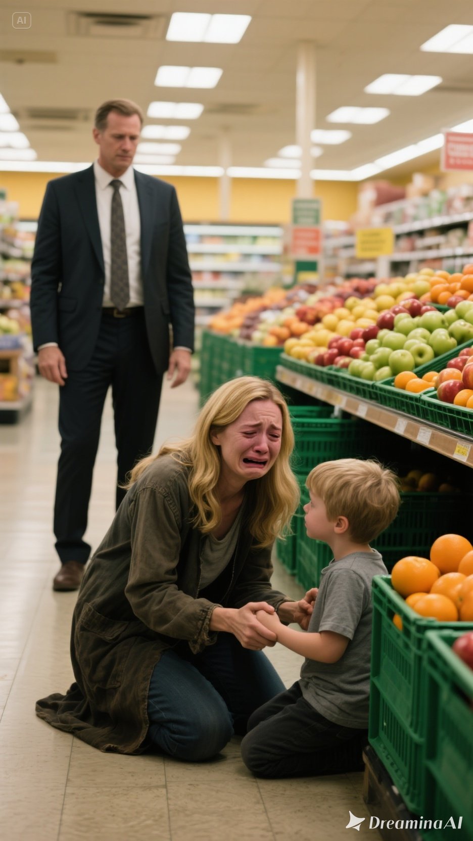 The words slipped from Mariana’s lips like a shattered whisper, a confession no parent should ever have to utter. Her voice shook as she tried to remain strong, but her red, exhausted eyes revealed the truth. Next to her, little Joao, barely five years old, held onto the edge of the almost-empty shopping cart with his tiny hands.