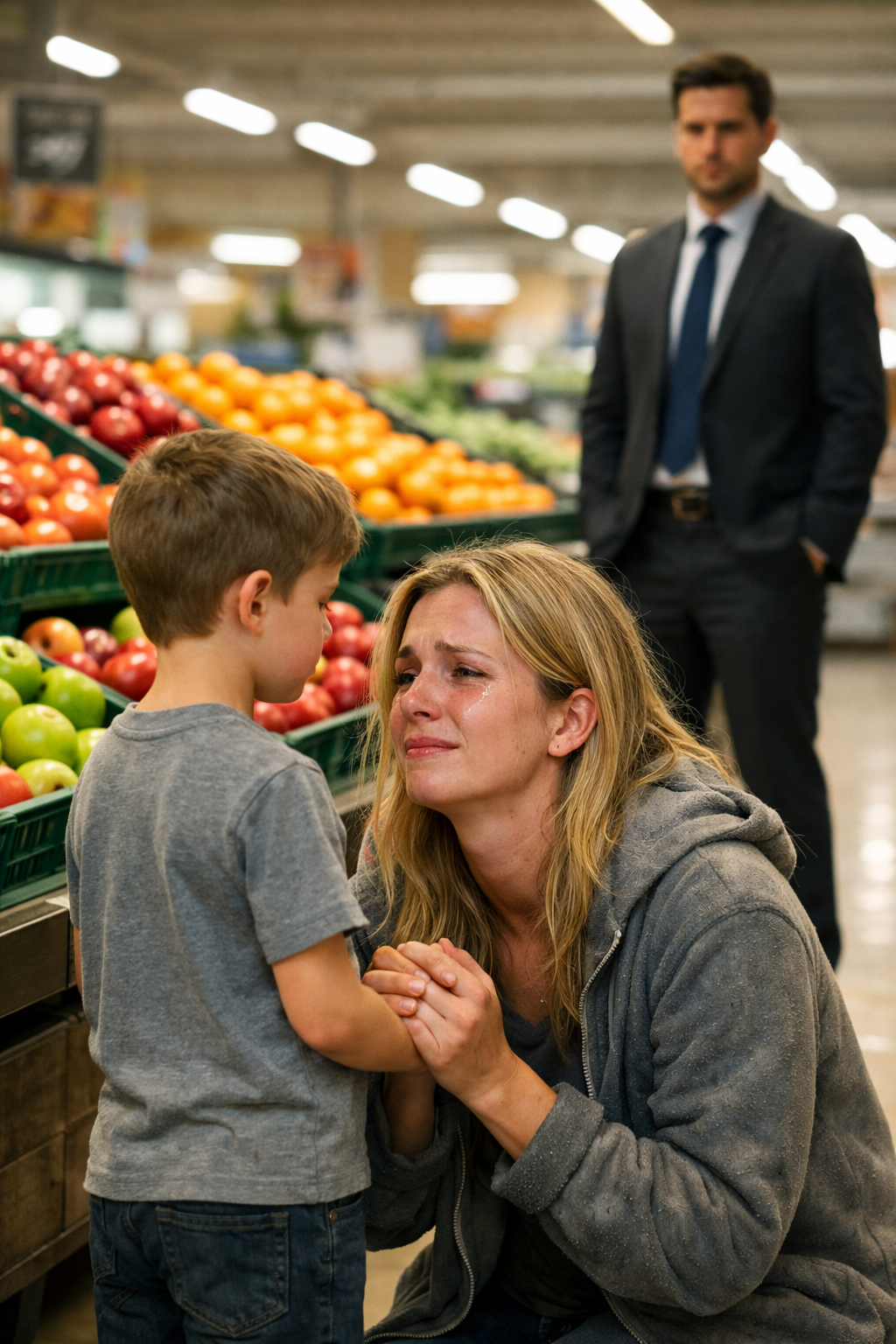She swallowed hard, the lump in her throat tightening. Her ex-husband had left a year earlier, abandoning them with debts, overdue rent, and a silence no Christmas decorations could fill. “No, honey. It’s just… it’s just that we don’t have enough money. Forgive Mom.”