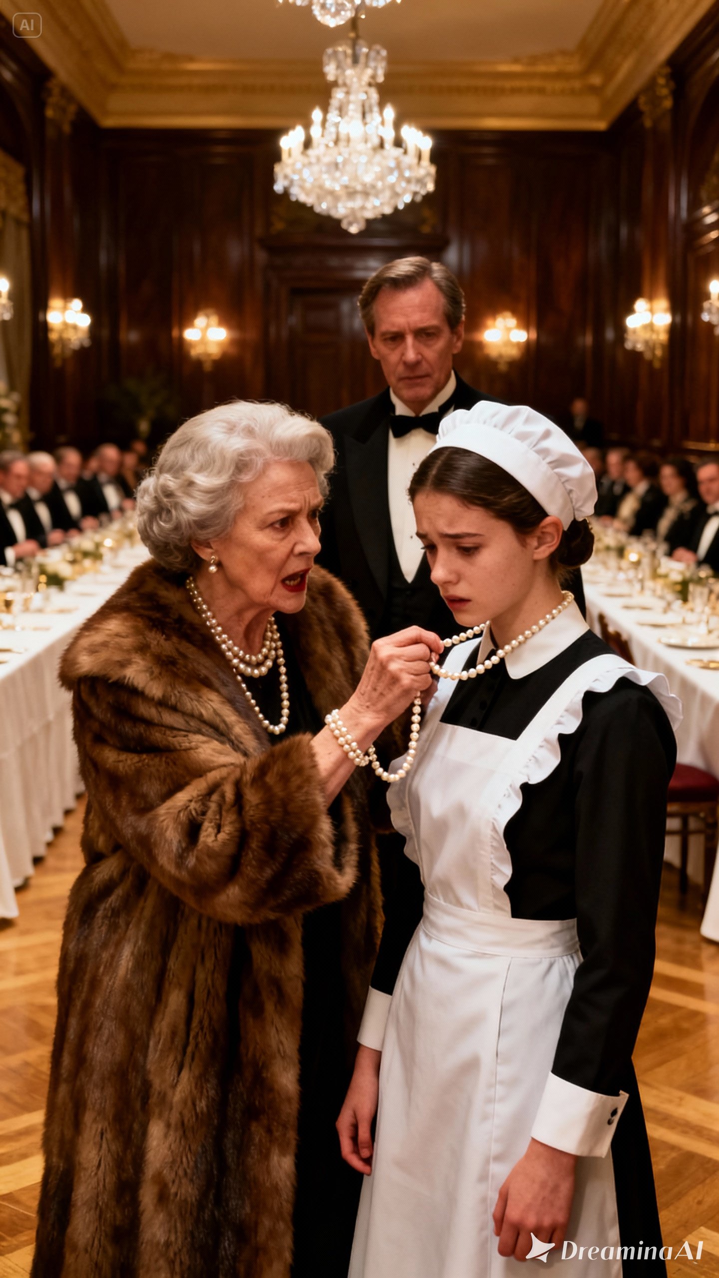The server—her nametag reading ROSALIE—instinctively grasped the pendant, eyes wide with fear.