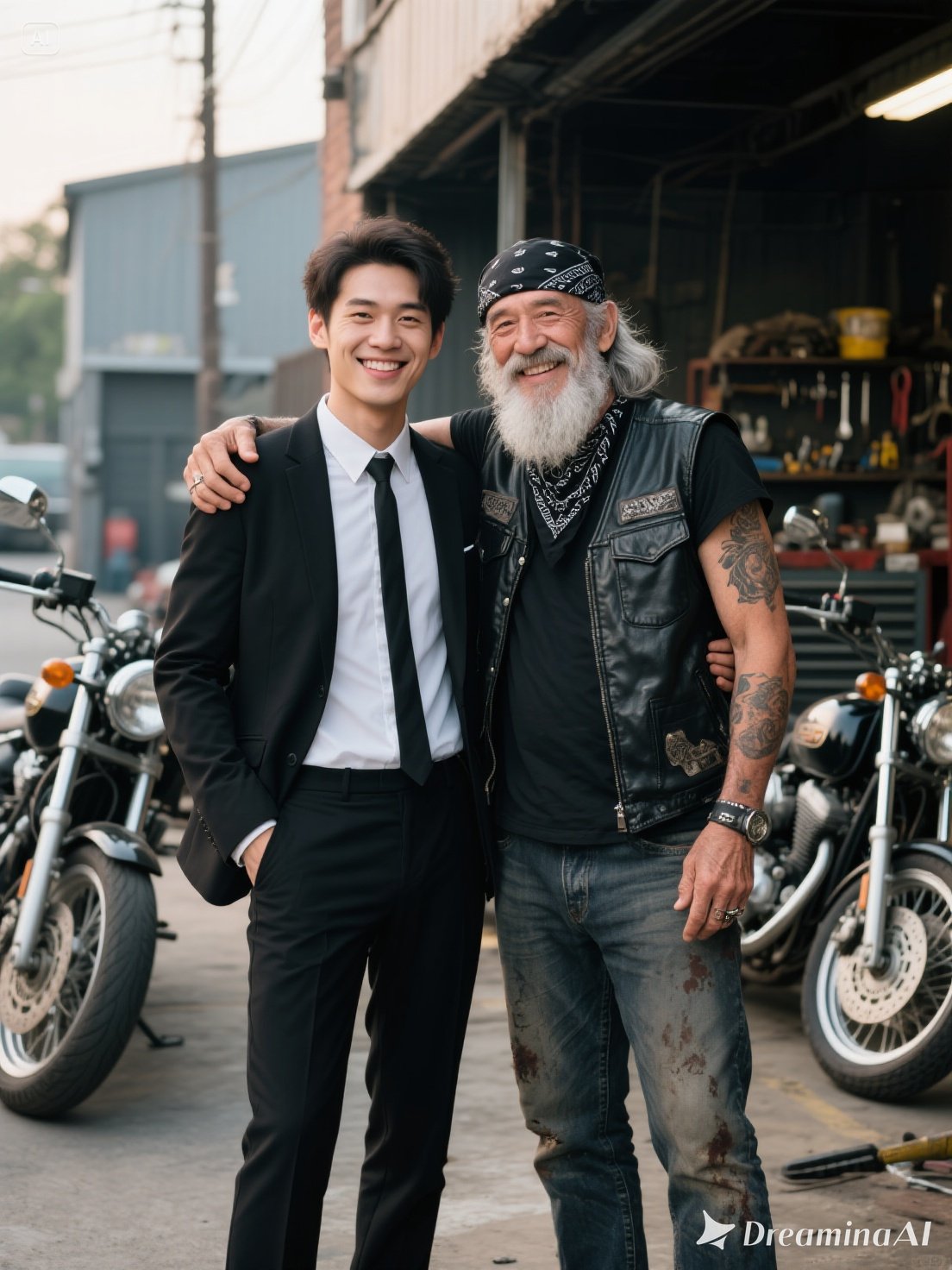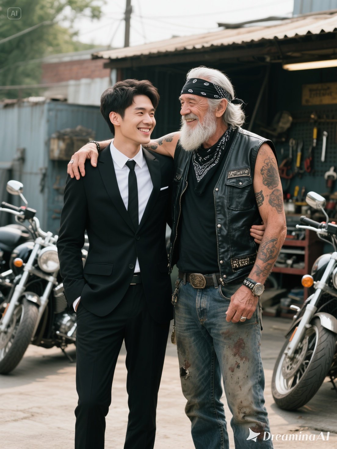 We work on bikes together, grease on our hands, classical music on the radio—his secret soft spot.
