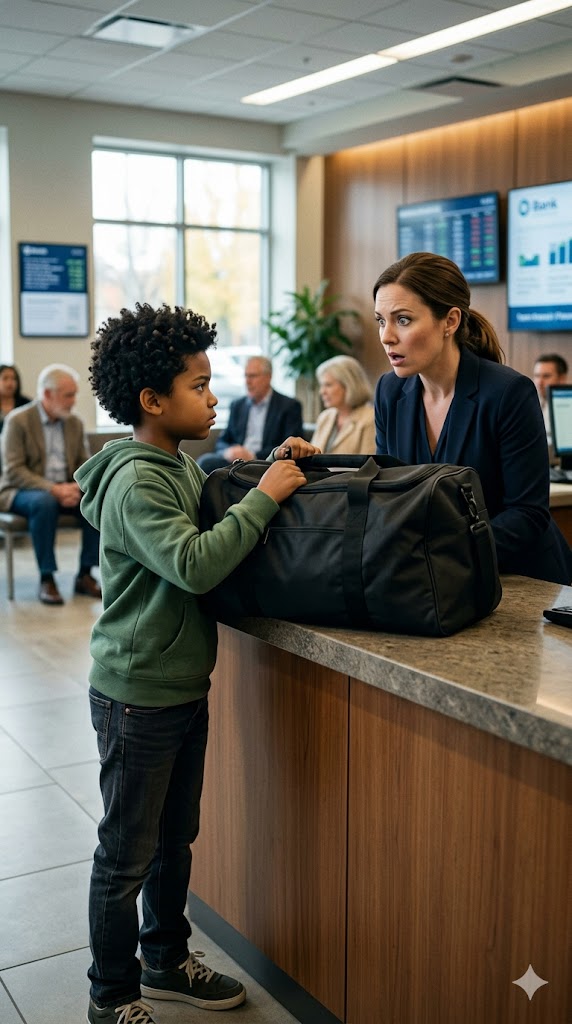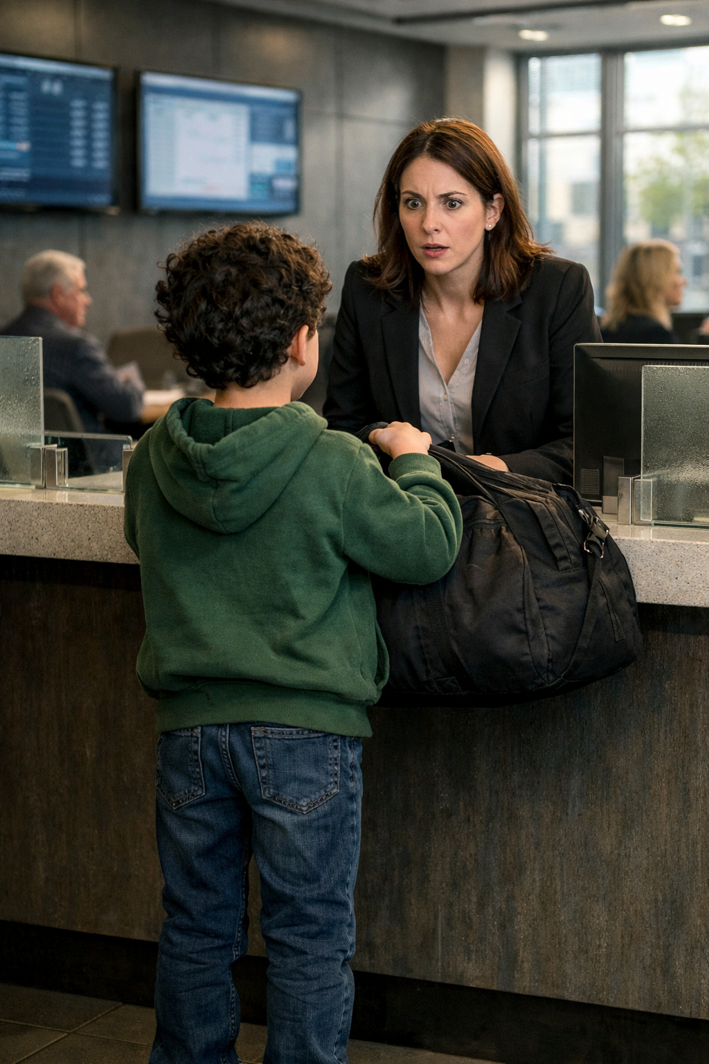 He couldn’t have been more than ten. Small frame. Narrow shoulders. Wearing a slightly oversized gray hoodie and faded blue jeans. His sneakers were dusty, as if he had walked a long way. But what stood out—if anyone had been paying attention—was the large black duffle bag he dragged behind him.