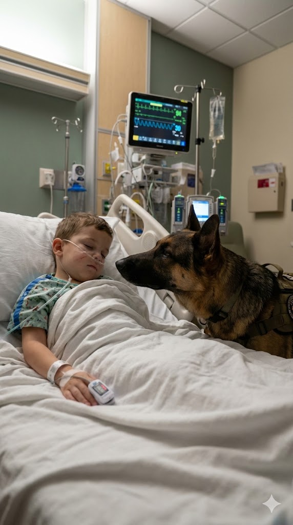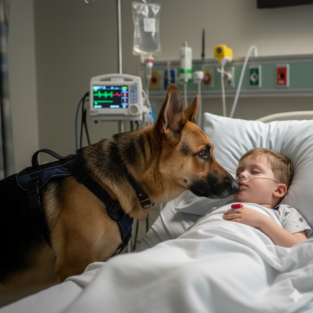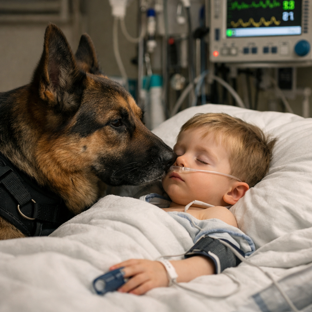 When Rico was finally brought into the room, the mother gasped—she hadn’t expected the doctors to agree. The dog walked slowly toward the bed, stood on his hind legs, gently placed his front paws on the edge, and leaned closer to the boy. He didn’t bark. He didn’t whine. He simply looked at him.