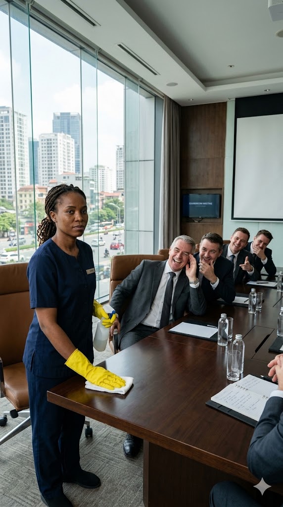 To senior leadership, Evelyn blended into the background. She was the unseen hand emptying trash bins, the quiet figure polishing fingerprints from mahogany tables, the one who replenished the coffee. For years she had worked there, silently enduring the toxic atmosphere circulating through the building’s vents. Hawthorne & Beck adorned business magazine covers, celebrated as a beacon of modern success, yet inside it was decaying. Arrogance trickled from the top down, and the higher someone climbed, the less regard they seemed to have for those beneath them.