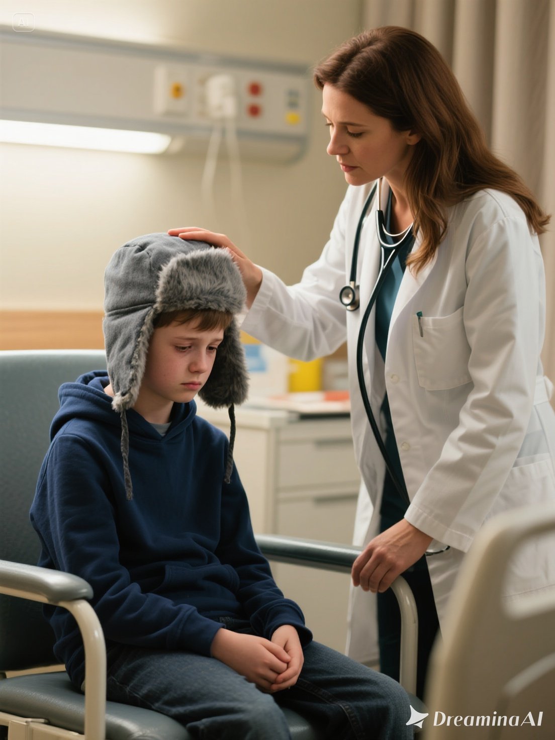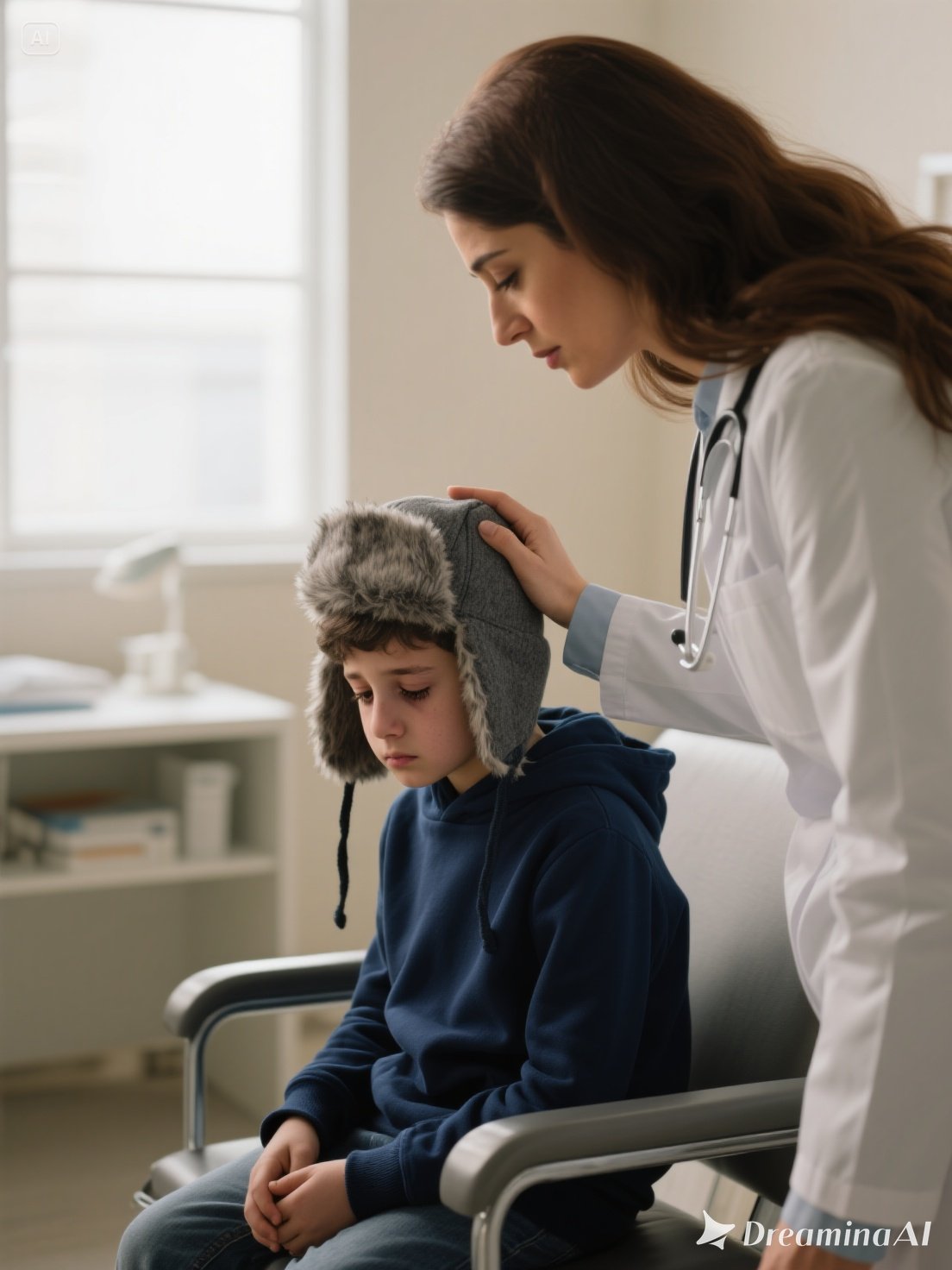 The exam was quiet, but Katerina couldn’t ignore how he flinched whenever the hat shifted.