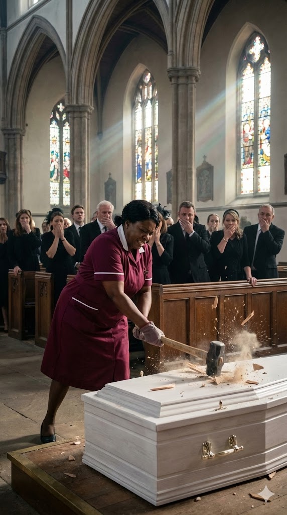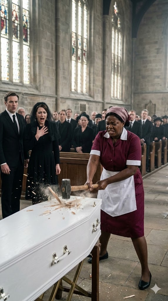 A young woman came running down the gravel path, her uniform damp with sweat, hair disheveled, breath torn apart by panic. At first, several mourners turned in annoyance—until they saw the raw terror etched across her face.