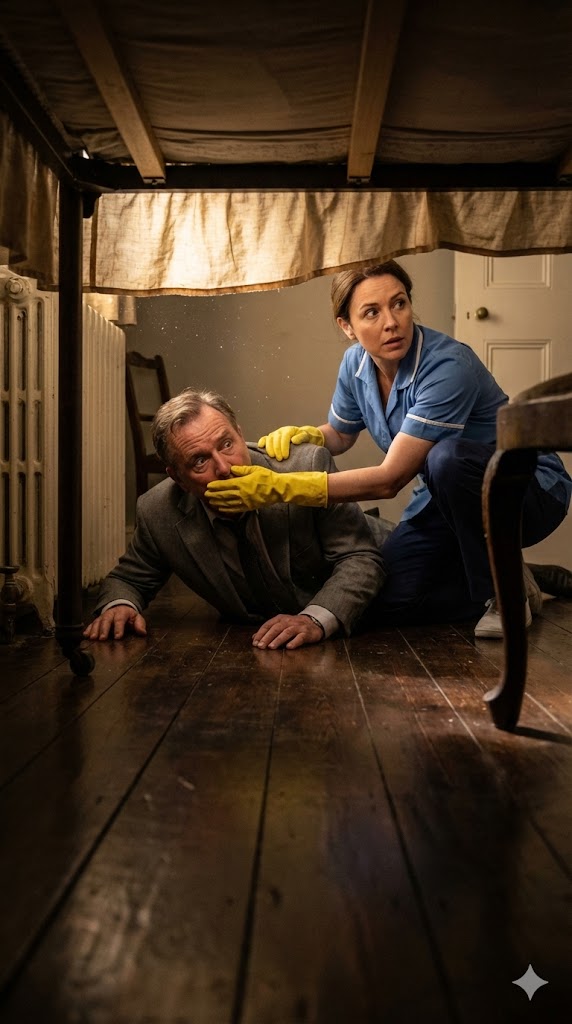 Roberto turned his head. It was Marlene, the cleaner who had been working there for just three weeks. He usually saw her in her blue uniform, hands roughened by detergent, hair tied back without ornament. She was the kind of person most overlooked… perhaps why he always offered her a “good morning” and a “thank you,” gestures many found unnecessary. Tonight, though, her eyes carried a different intensity. Marlene quietly guided him behind a bookshelf, as though hiding a millionaire in his own home were the most natural thing in the world.