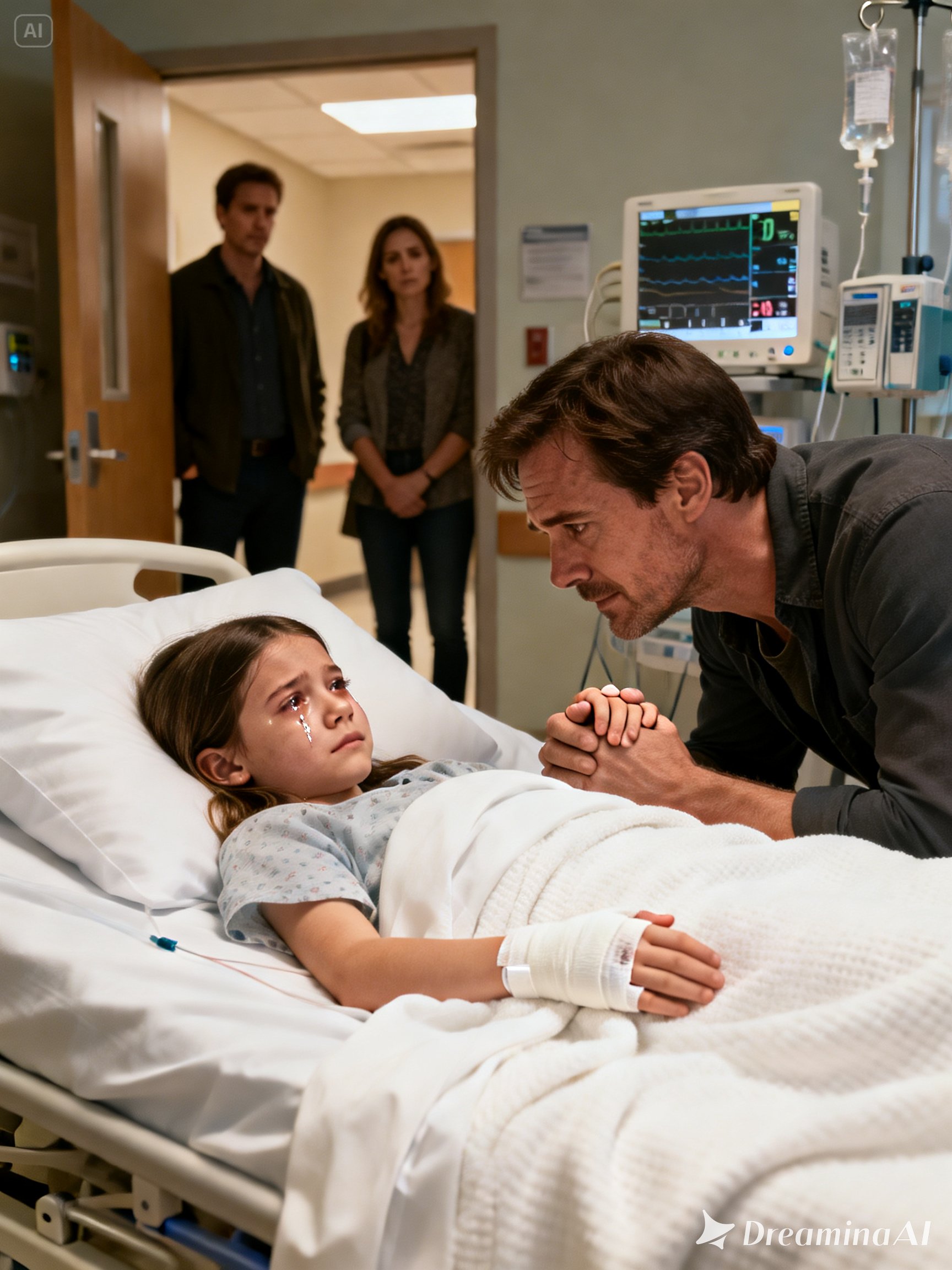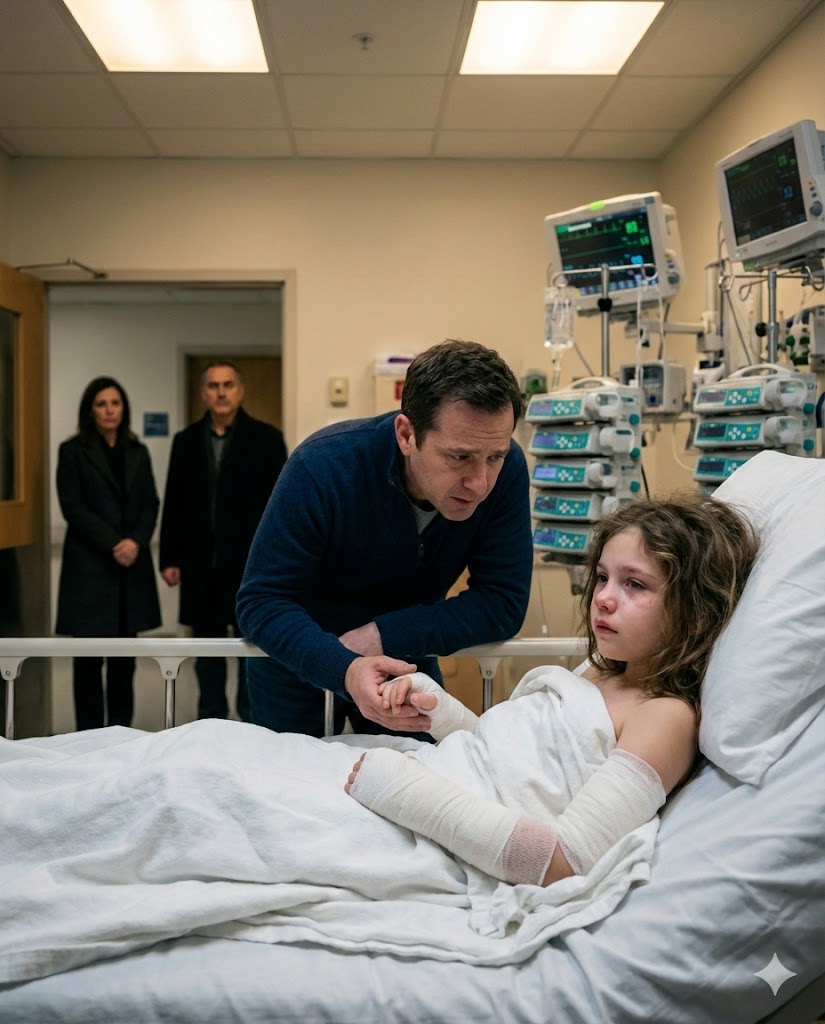The sharp smell of antiseptic hit me as soon as I entered the hospital. A nurse led me to the pediatric ICU. Lily lay in the bed, pale and heartbreakingly small, both hands wrapped in thick white bandages. Machines hummed softly around her.