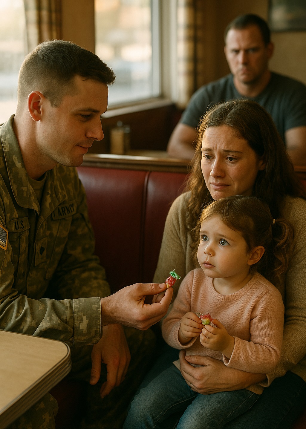 Sergeant Michael Harris, home on leave after a long deployment, had stopped there simply to stretch his legs and enjoy a hot meal without the noise of a crowded city. He ordered coffee, a slice of pie, and settled into a booth near the window. It had been months since he’d sat somewhere this peaceful.