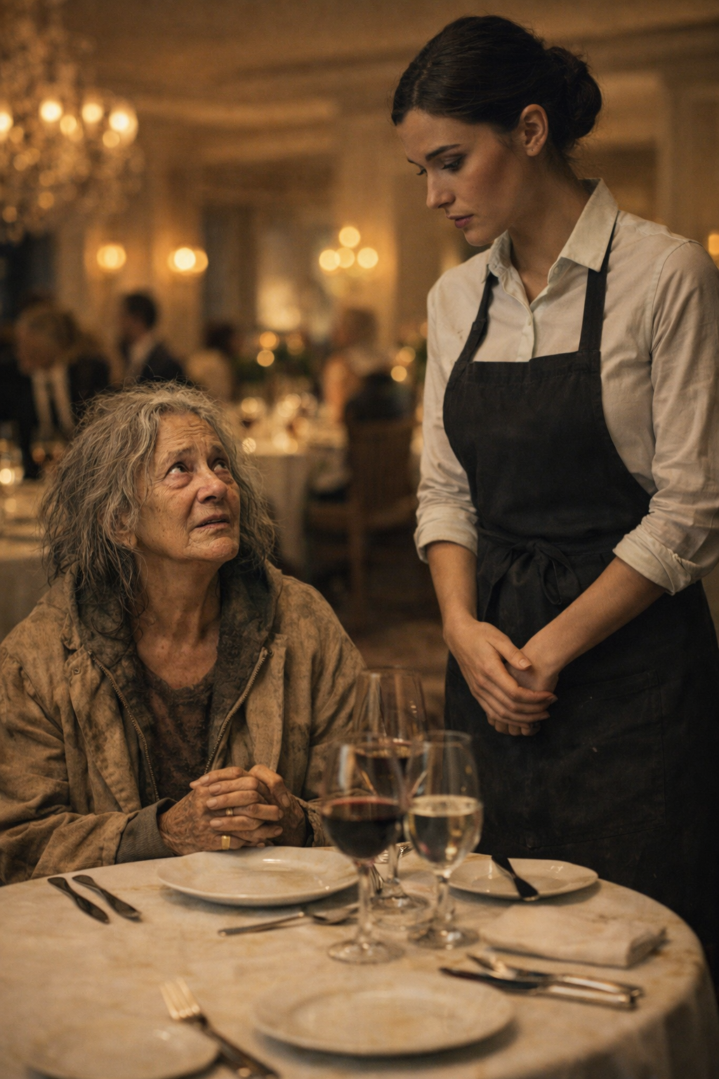 Several diners glanced her way with curiosity. One couple leaned in to whisper. A man near the bar frowned, puzzled about how someone like her had been allowed inside.