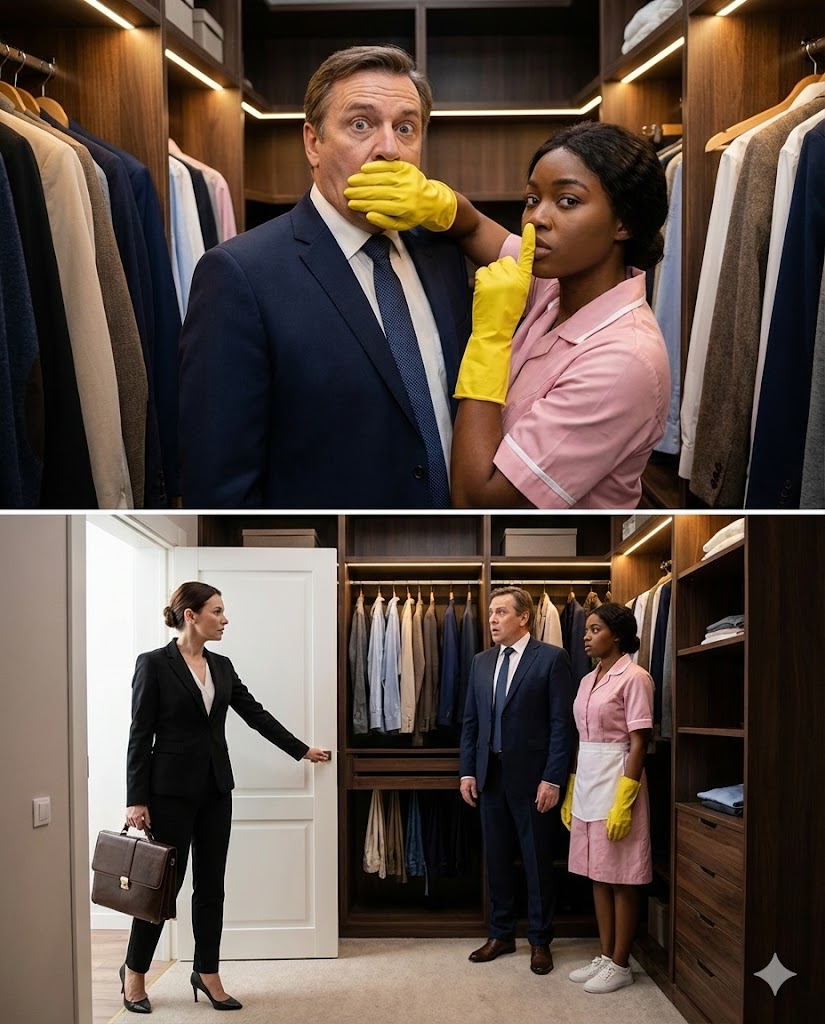 She opened the closet door just enough to slip out. Marcus followed, his heart slamming inside his ribs like it wanted out.