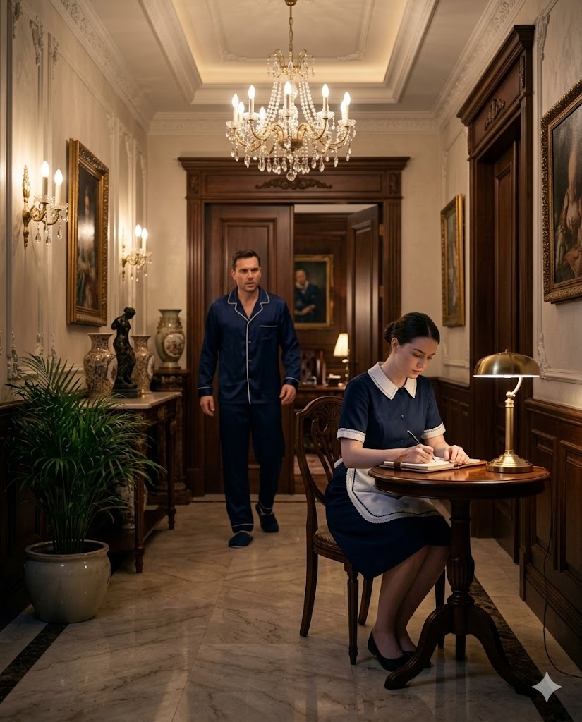 That was when he noticed something unusual. A faint, flickering glow drifted from the long marble hallway leading to the service wing, a part of the house he rarely visited. It wasn’t the sharp white glow of the automatic lights; it was warm and wavering. He frowned, thinking the last thing he needed on his already endless list of problems was an electrical issue. Walking slowly, he turned the corner—and suddenly stopped. The sight before him froze him in place.