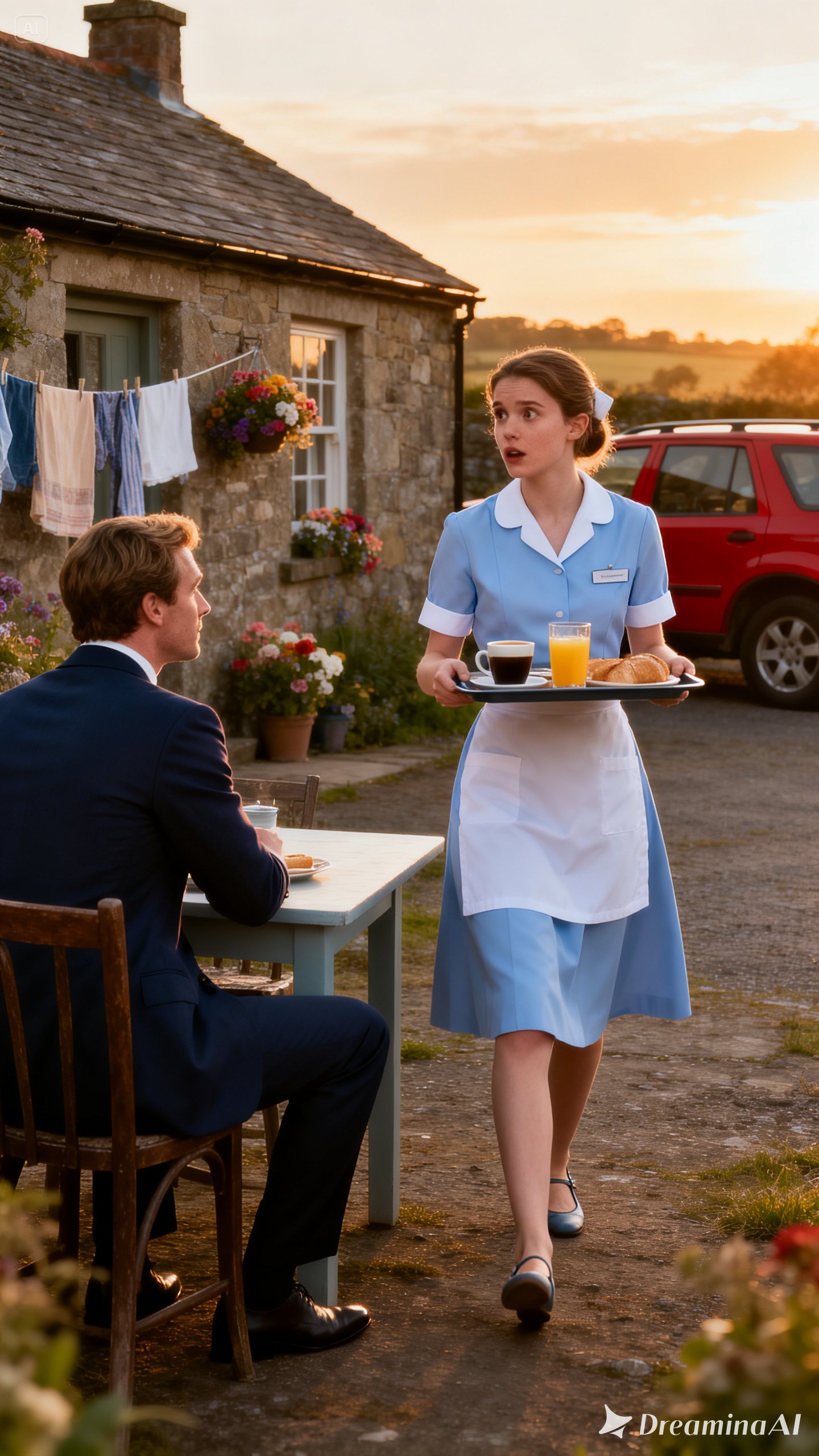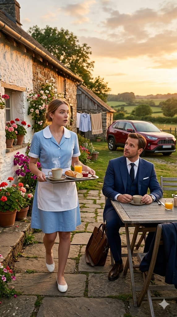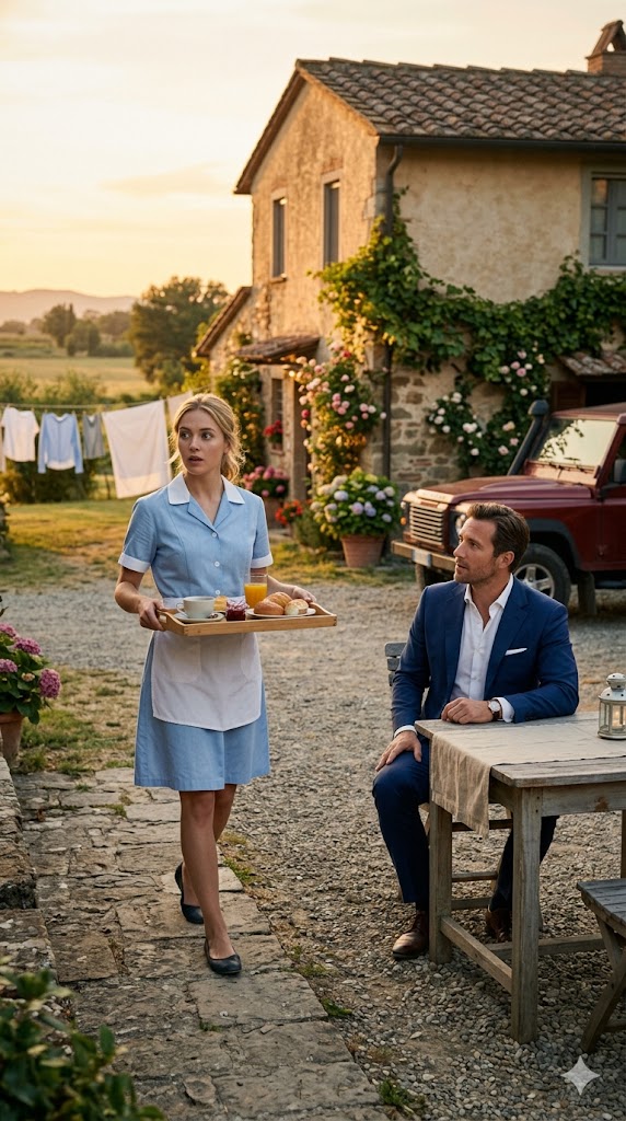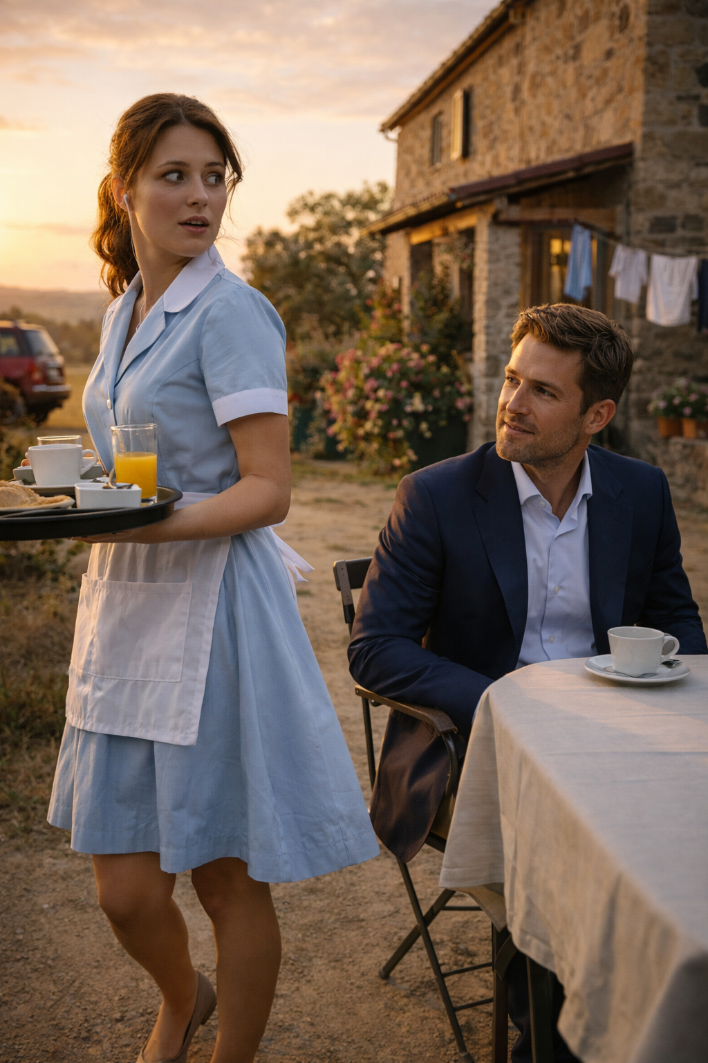 The door opened. Maria appeared, a small tray in her hands: a glass of juice, a cup of coffee, a plate of bread. Seeing him, she froze, as though time itself paused.