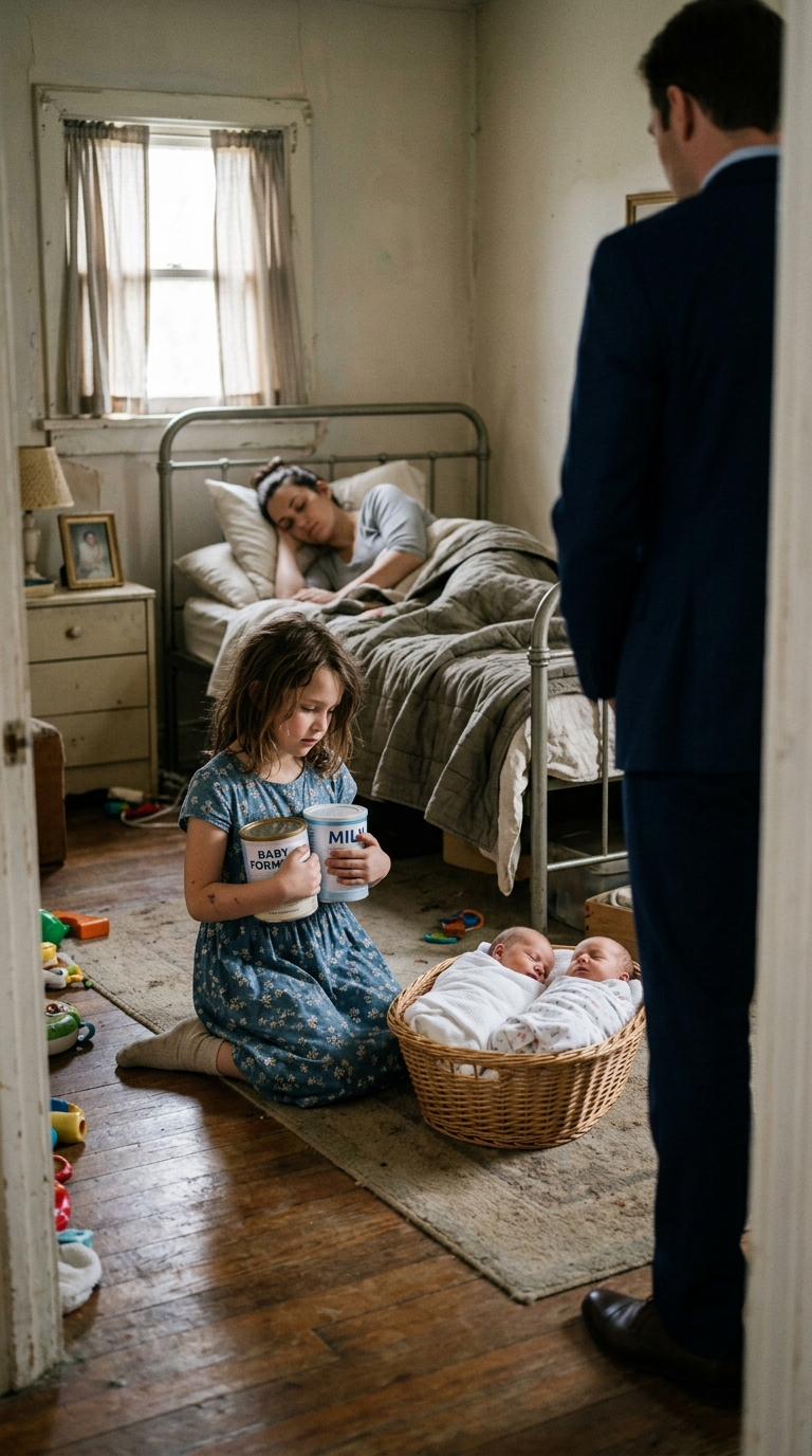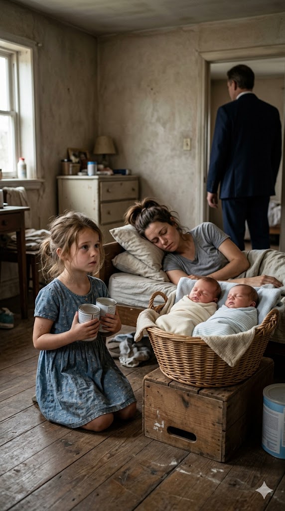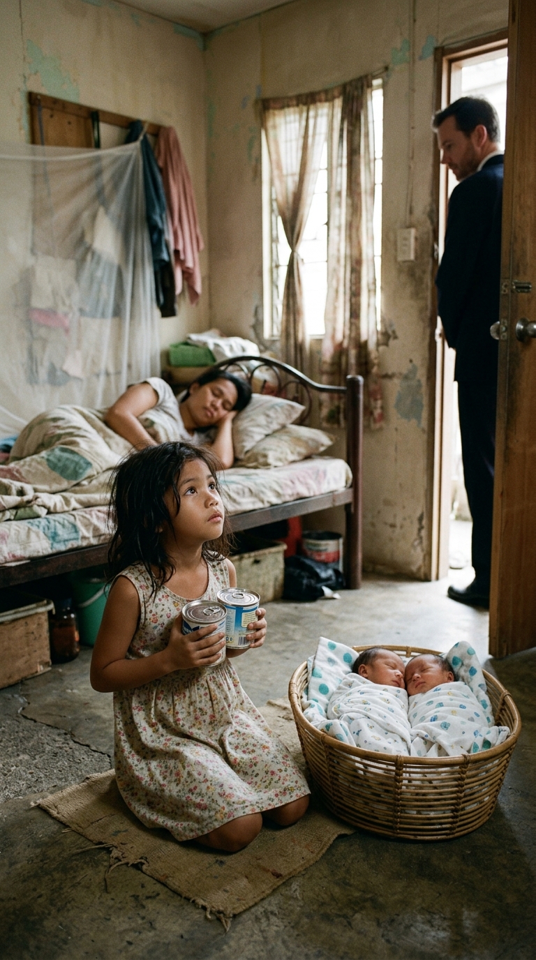Mateo pushed the door open just a few inches. The inside smelled of dampness, rust, and deep neglect. On the dirt floor, inside a banana crate lined with newspaper, two twins cried with terrifying weakness. Sofía placed the two cans on an overturned bucket and ran toward a mattress at the back of the room.
