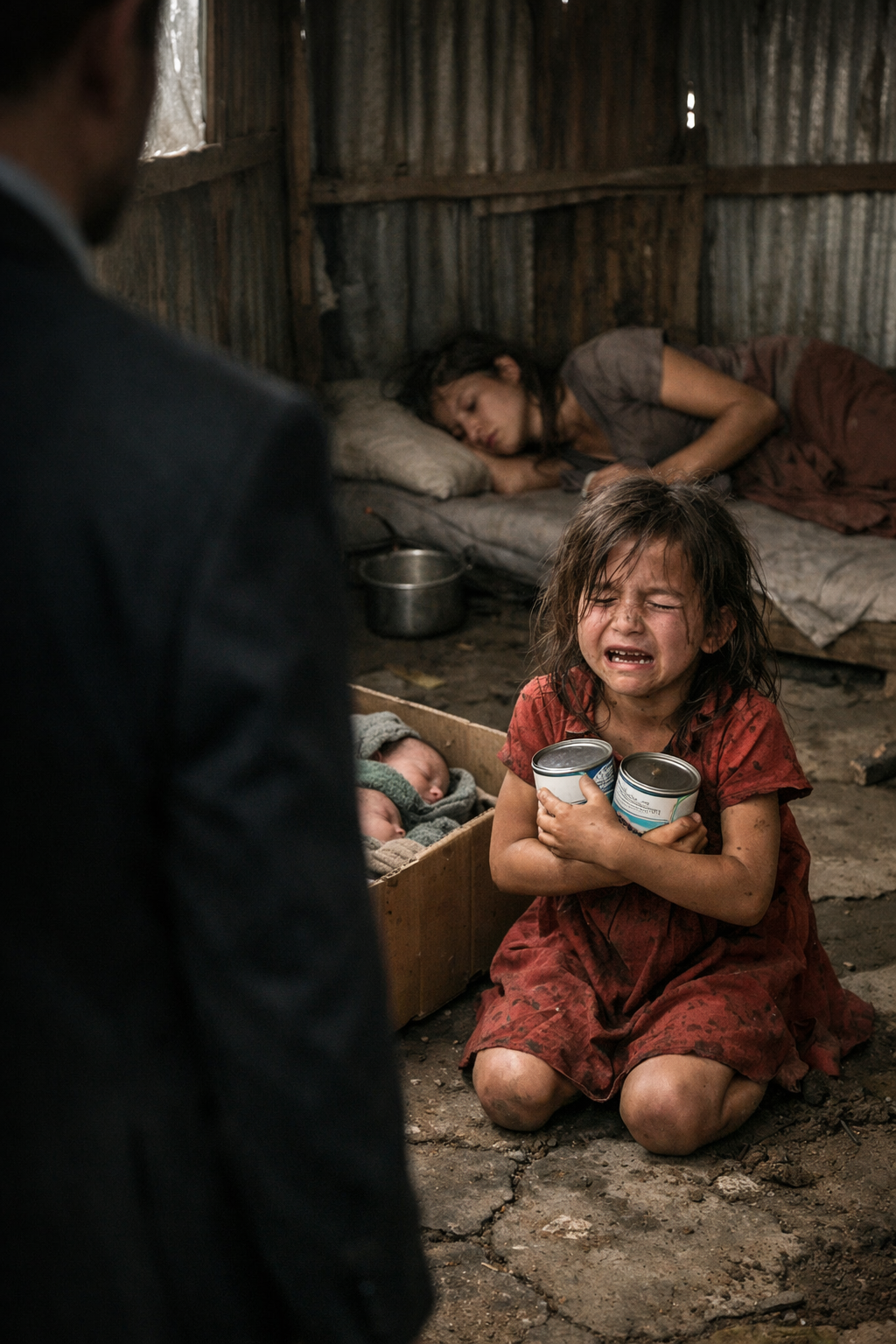 There was no movement at all. Mateo rushed inside. The girl jumped back in terror, clutching the two cans.