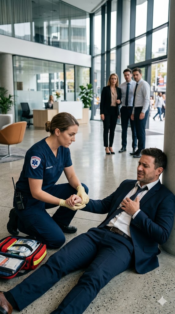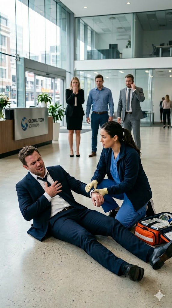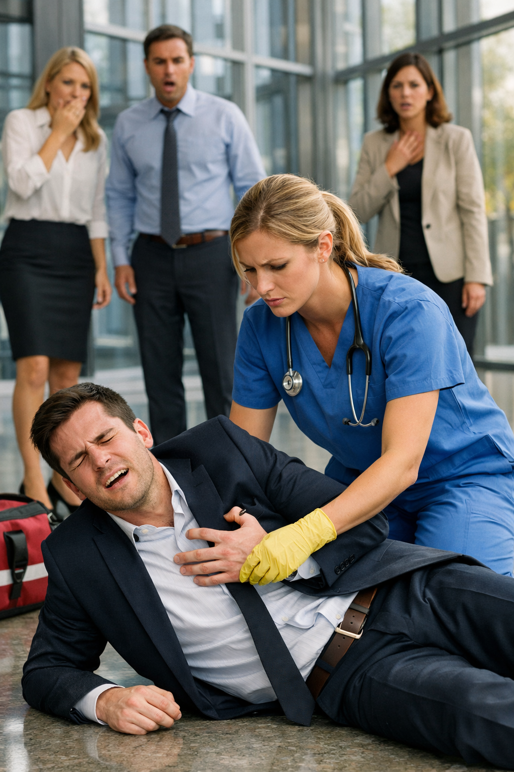 “Call emergency services now!” Lara ordered. She didn’t ask. Her voice was firm, steady. “Tell them it’s a suspected heart attack. Give them the full address and the floor. Now!”