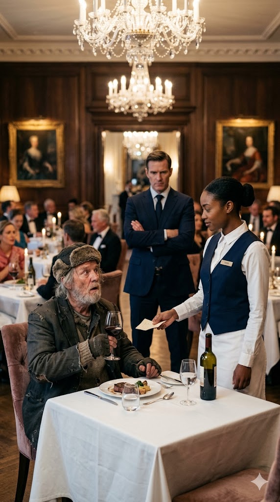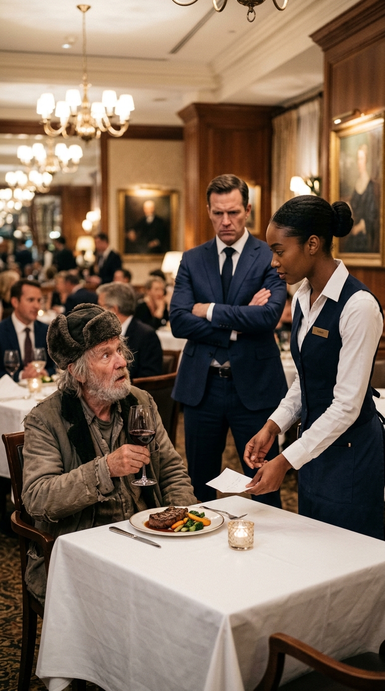 When the glass doors opened and Alejandro, disguised as a homeless man, stepped into the luxurious dining room, Carmen immediately sensed something was different. Yes, he looked dirty and unkempt, but his posture was too steady, and his sharp, observant gaze took in every detail. Rodrigo, the restaurant’s manager for the past five years—a man who carried himself with elitism and secretly humiliated his staff—approached quickly with a look of disgust masked as a smile. He tried to throw him out, but Alejandro pulled out a thick wad of cash and ordered the A5 Wagyu steak, paying upfront. Rodrigo, unable to refuse the money in front of the guests, seated him at table 7—the worst table in the restaurant, near the alley’s garbage bins.