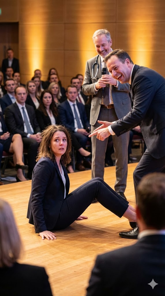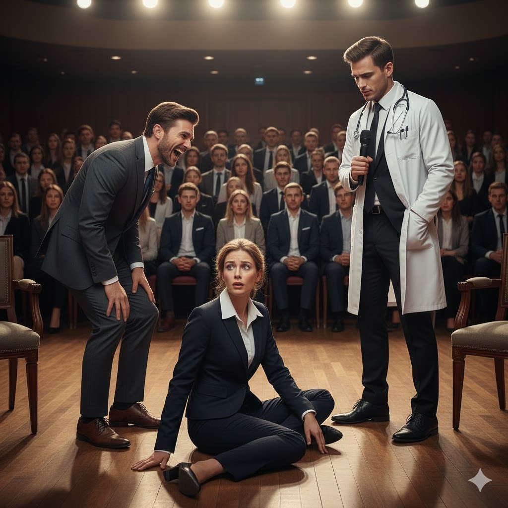 The chandeliers buzzed like hornets trapped in crystal cages. Champagne stems clinked against linen-covered tables in tight, petty rhythms. A low tide of laughter rolled toward her from every direction when the microphone squealed and Dr. Hart announced she was “performing.”