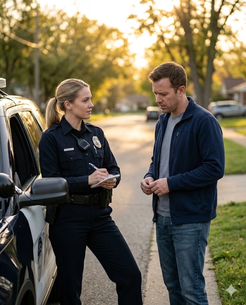 It was a chilly Tuesday afternoon in a quiet suburban town in the United States. The sky hung low and gray, the kind that made everything seem heavier. Daniel Parker tightened his grip on the steering wheel as he guided his aging sedan to the roadside. The flashing red and blue lights behind him made his stomach drop.