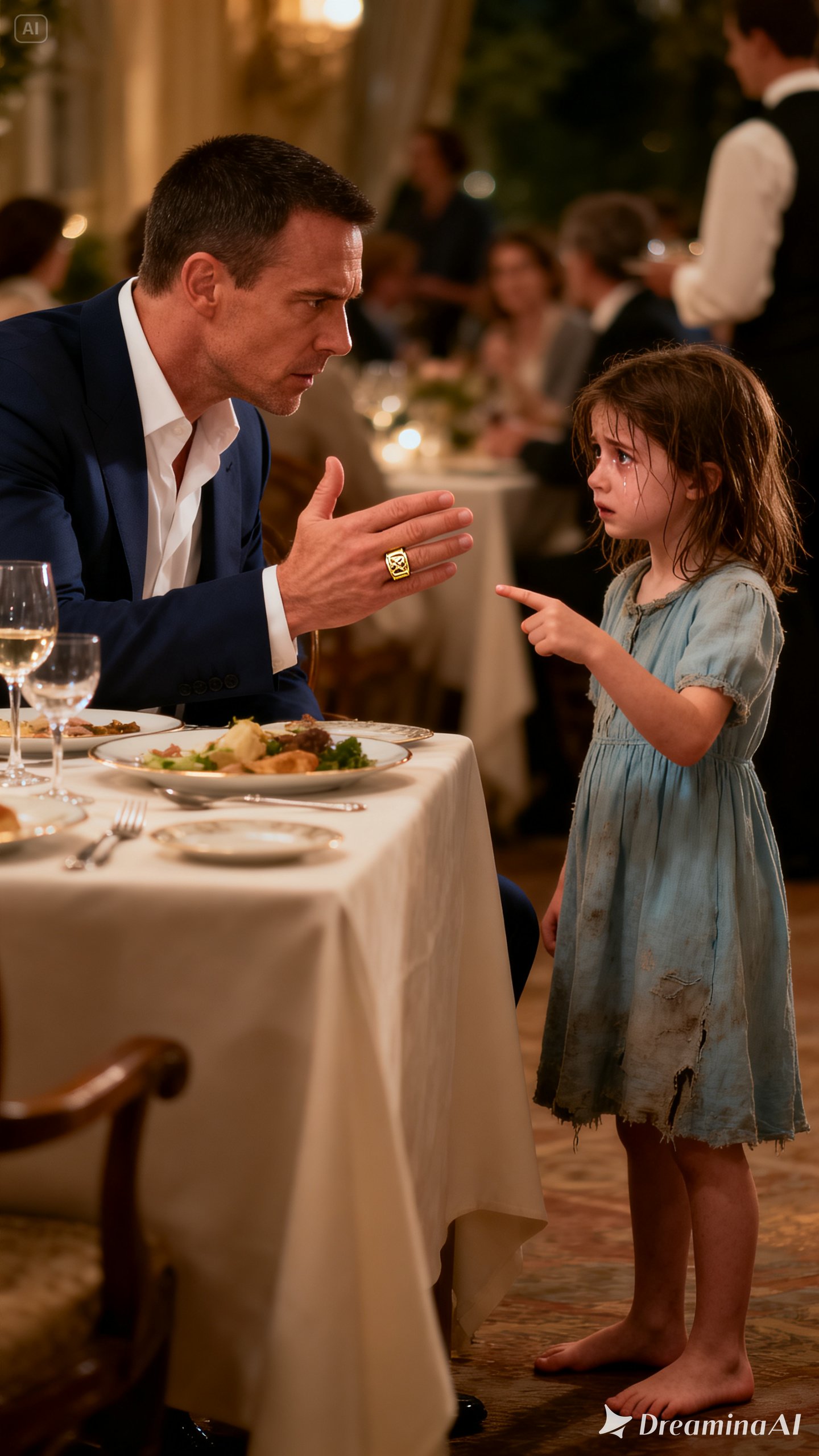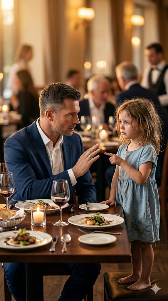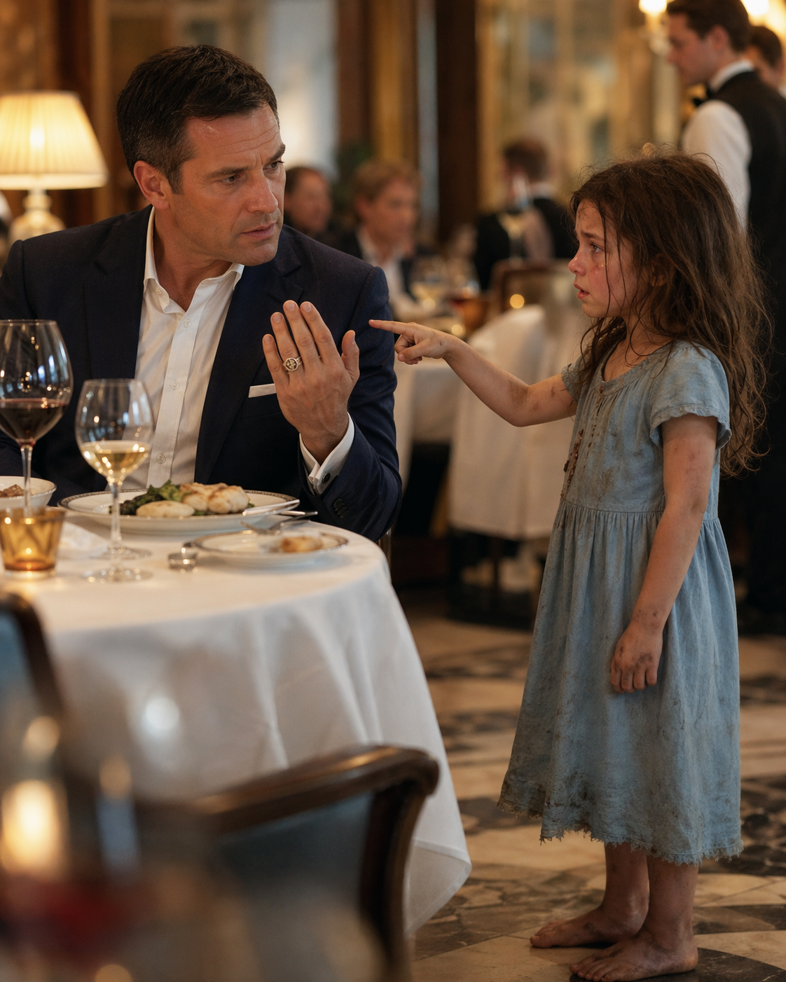 For a few seconds, everything around him disappeared. The music, the conversations, the movement of the restaurant—it all faded. He had seen the burned car. He had believed she was gone. But now the past had cracked open because a hungry child had recognized a ring.