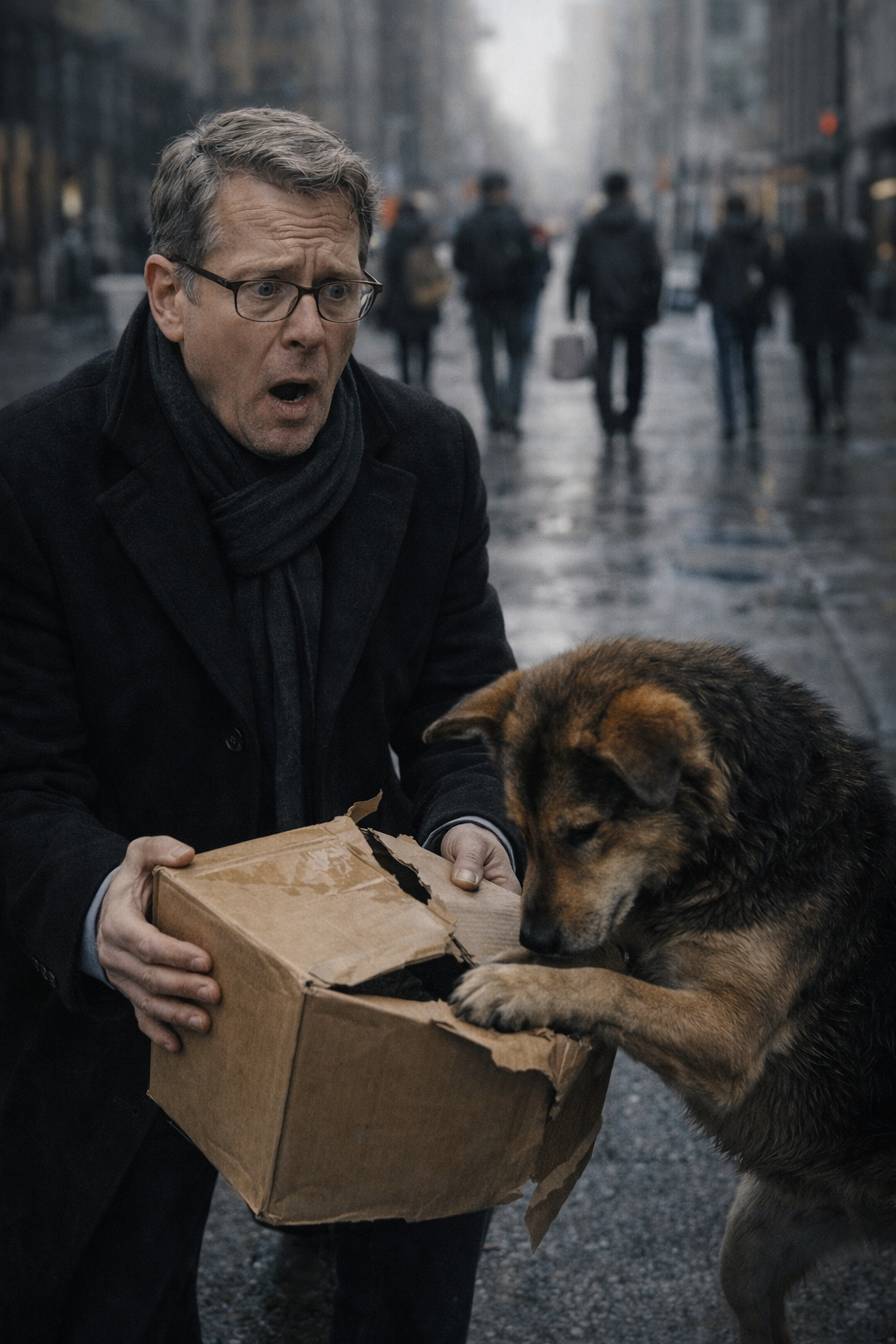A stray dog, an abandoned box, a few scattered papers, strangers who finally choose to look instead of walking by—that was enough to restore hope where everything seemed closed. And if this story left a lasting mark on those who witnessed it, it was because it demonstrated, with rare clarity, that no sincere loyalty is ever wasted. Sooner or later, it finds its answer.