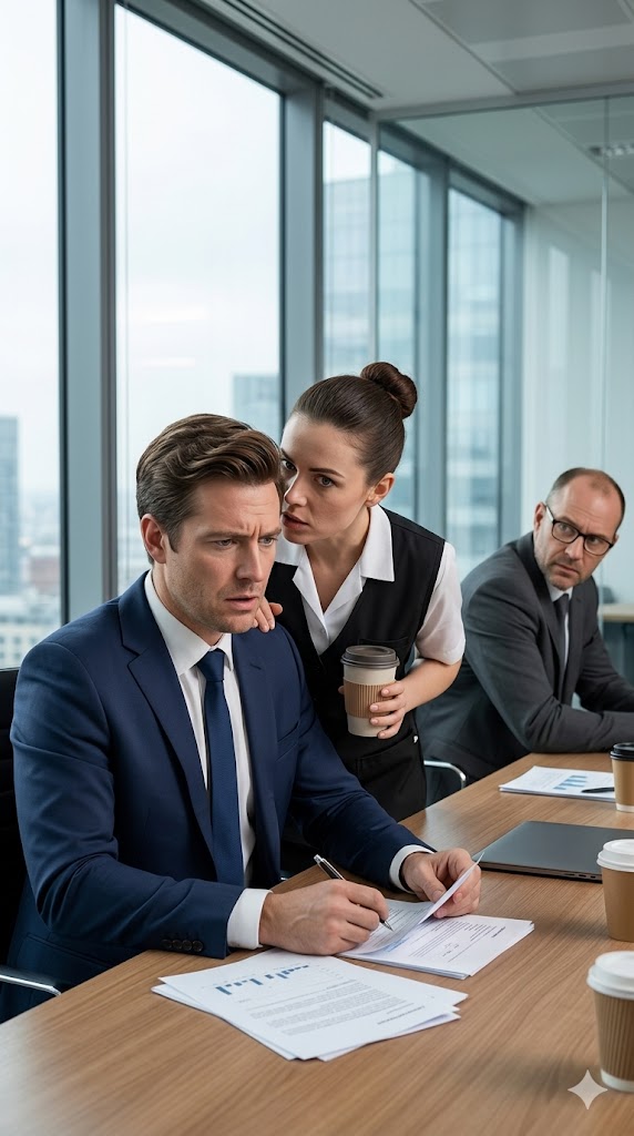 The Germans continued speaking. Martin continued translating. But the room no longer felt balanced. Something beneath the surface had begun to crack. Adrian leaned back slowly in his chair, the contract still open in front of him, but suddenly feeling heavier than before.