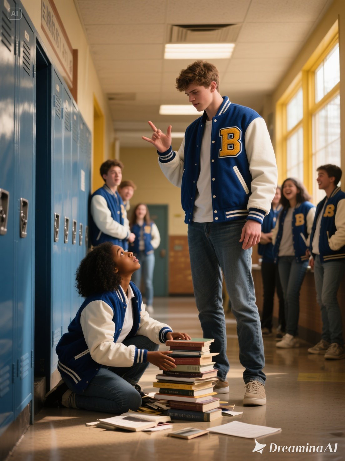 That was when she spotted Liam Rhodes—tall, broad-shouldered, and radiating a confidence that demanded either loyalty or avoidance. He leaned against the lockers, surrounded by teammates in letterman jackets, their laughter a little too loud.