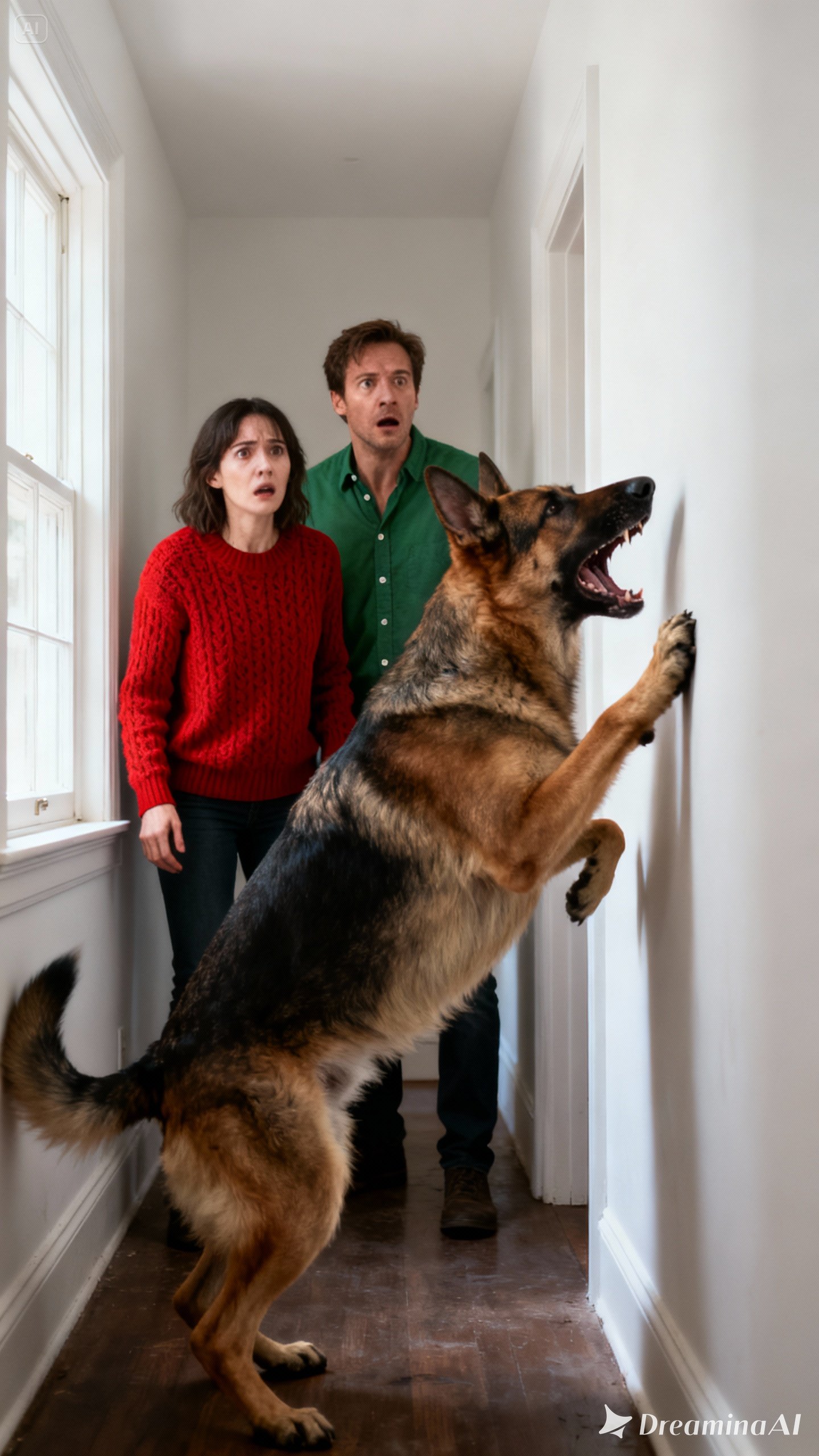 The following nights became a psychological nightmare. Max began scratching at the wall—not the usual scratch to be let outside, but a frantic attempt to break through the plaster. His paws began to bleed, leaving red streaks on the pristine white paint we’d loved so much when we first rented the place. Clara started getting scared. “I feel like someone’s watching me when I’m in the shower,” she confessed one night, her voice trembling. I tried to be the rational one, telling her it was probably mice in the attic or termites in the wood, anything to calm her.