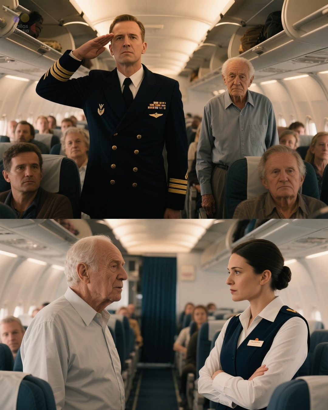 An elderly veteran was quietly asked to give up his seat on a flight, just to make room for a family, He didnt argue – he just stood up! But 9 minutes after takeoff was delayed, the pilot walked out of the cockpit, and saluted him in front of everyone!