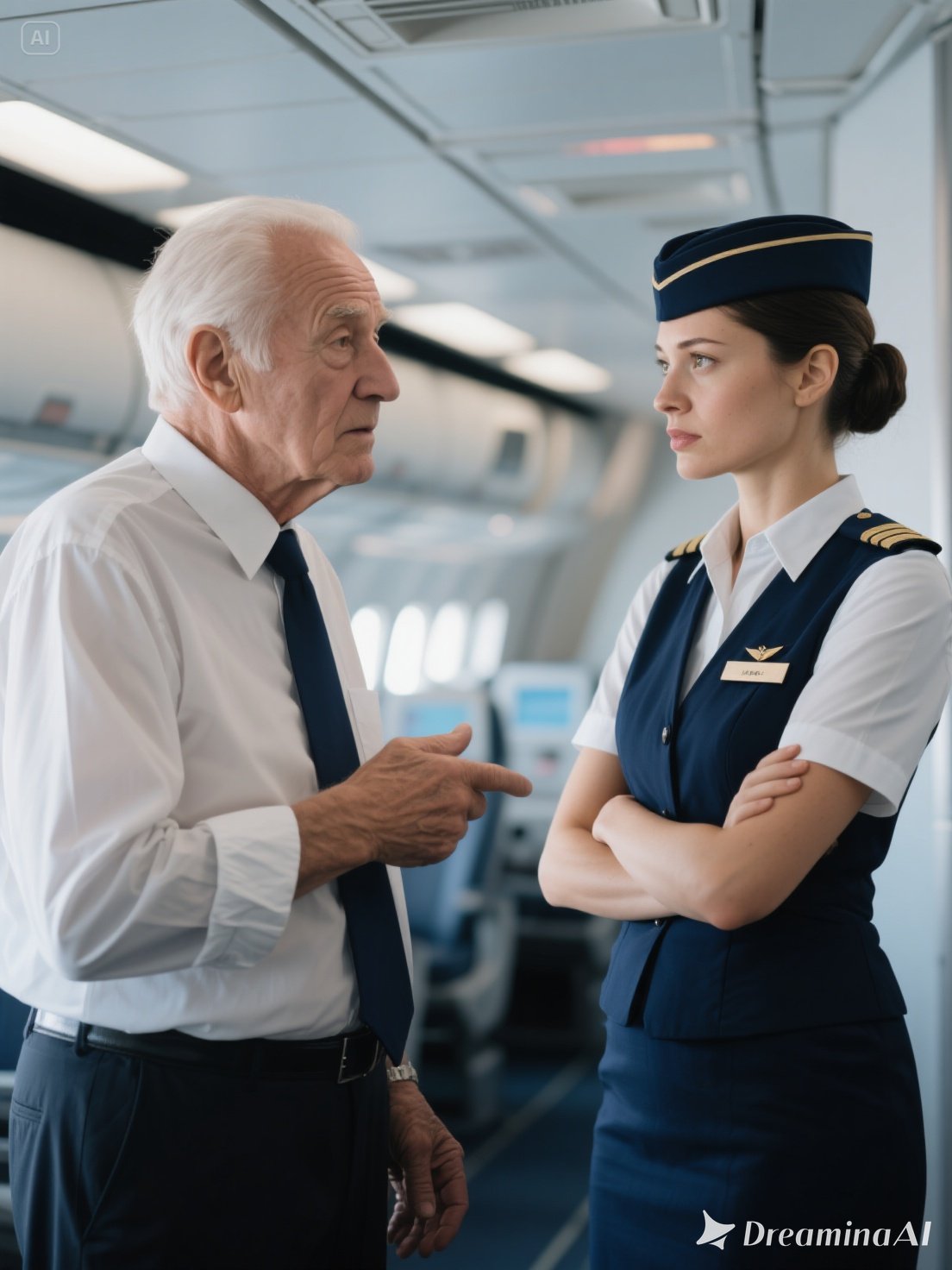 The cockpit door opened. The cabin went silent. The captain stepped out — tall, composed, uniform crisp, silver wings glinting. All eyes followed him as he walked straight down the aisle.