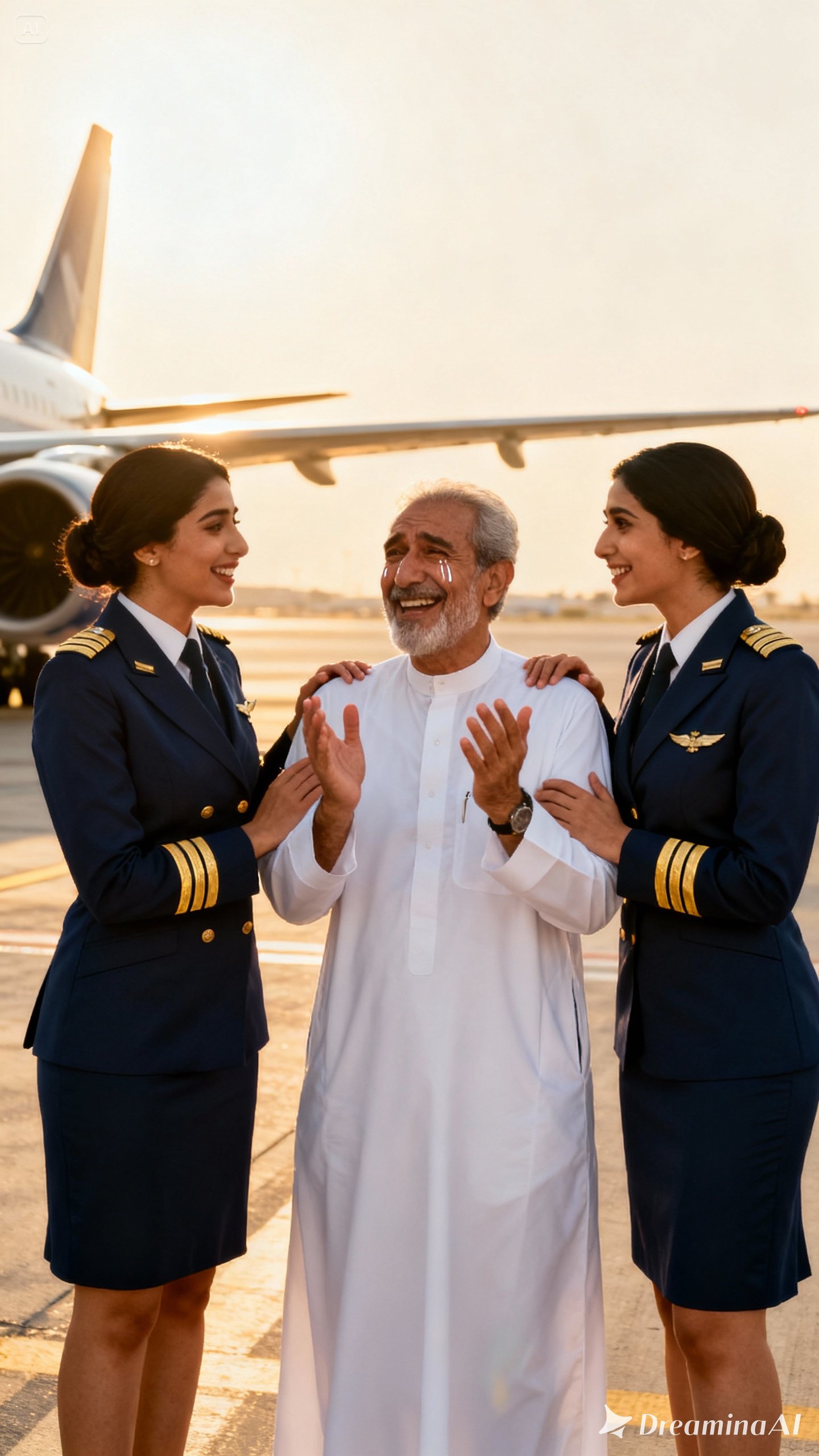 Then, one day, as he rested on a small cot in their cramped rented room, Asha and Diya returned—grown women, radiant and strong, dressed in crisp pilot uniforms.