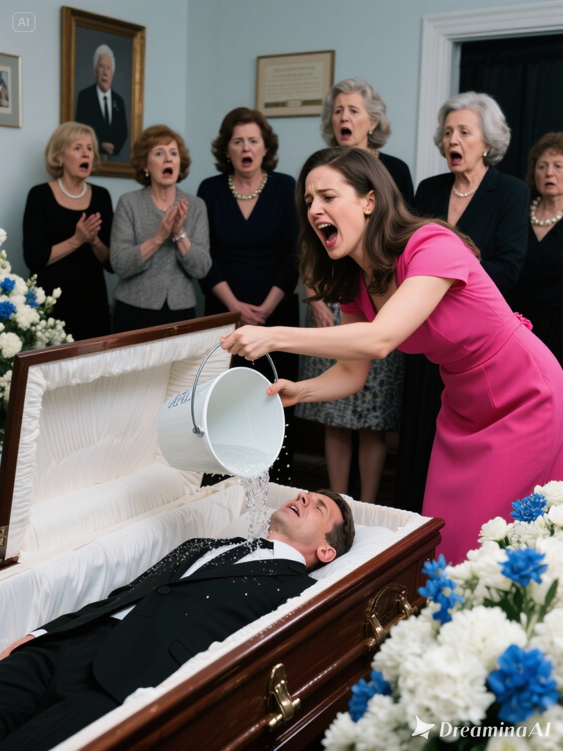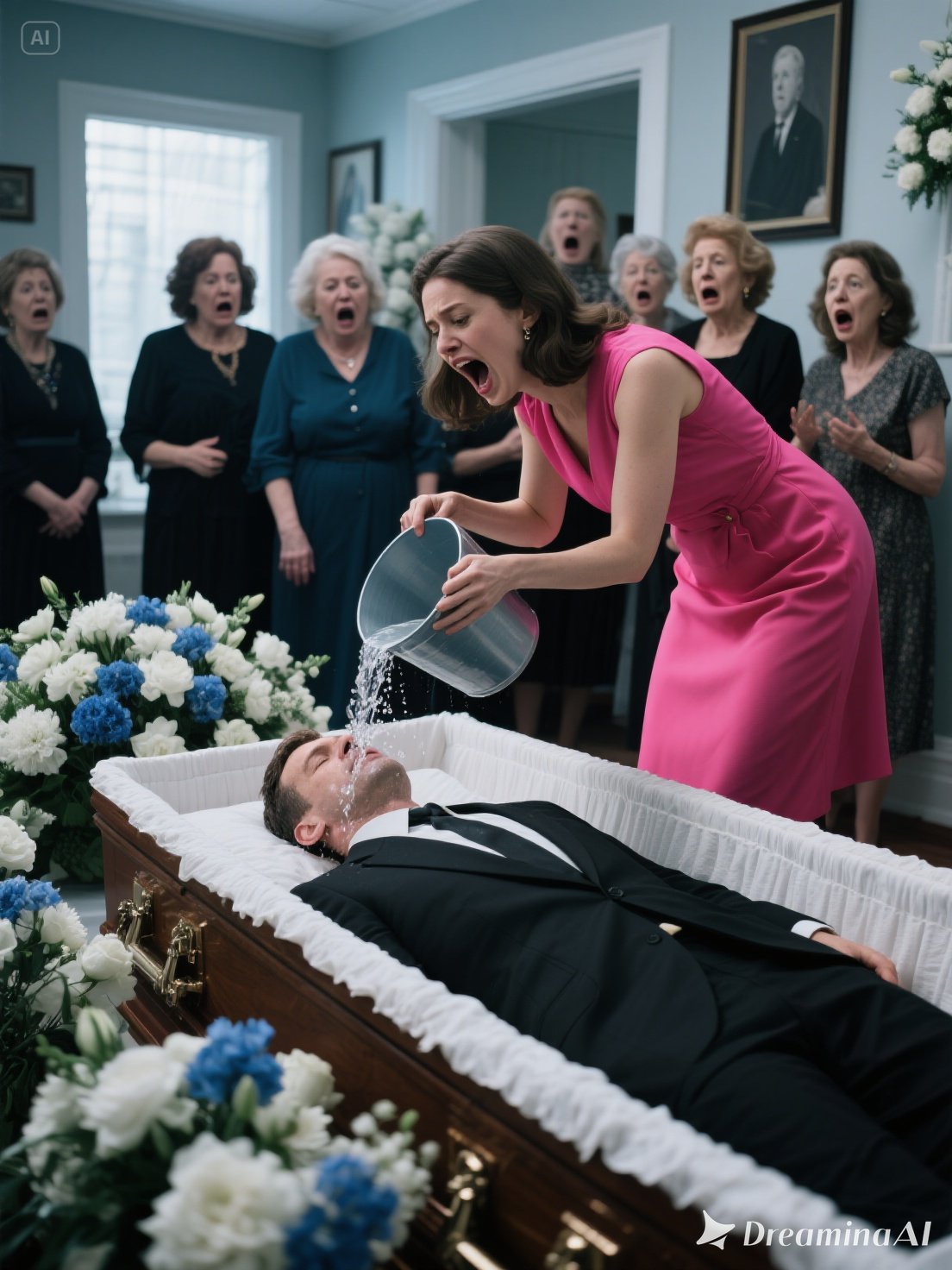 Without warning, she knelt beside the coffin and, with unflinching resolve, emptied the bucket onto Daniel’s face. 😱😱