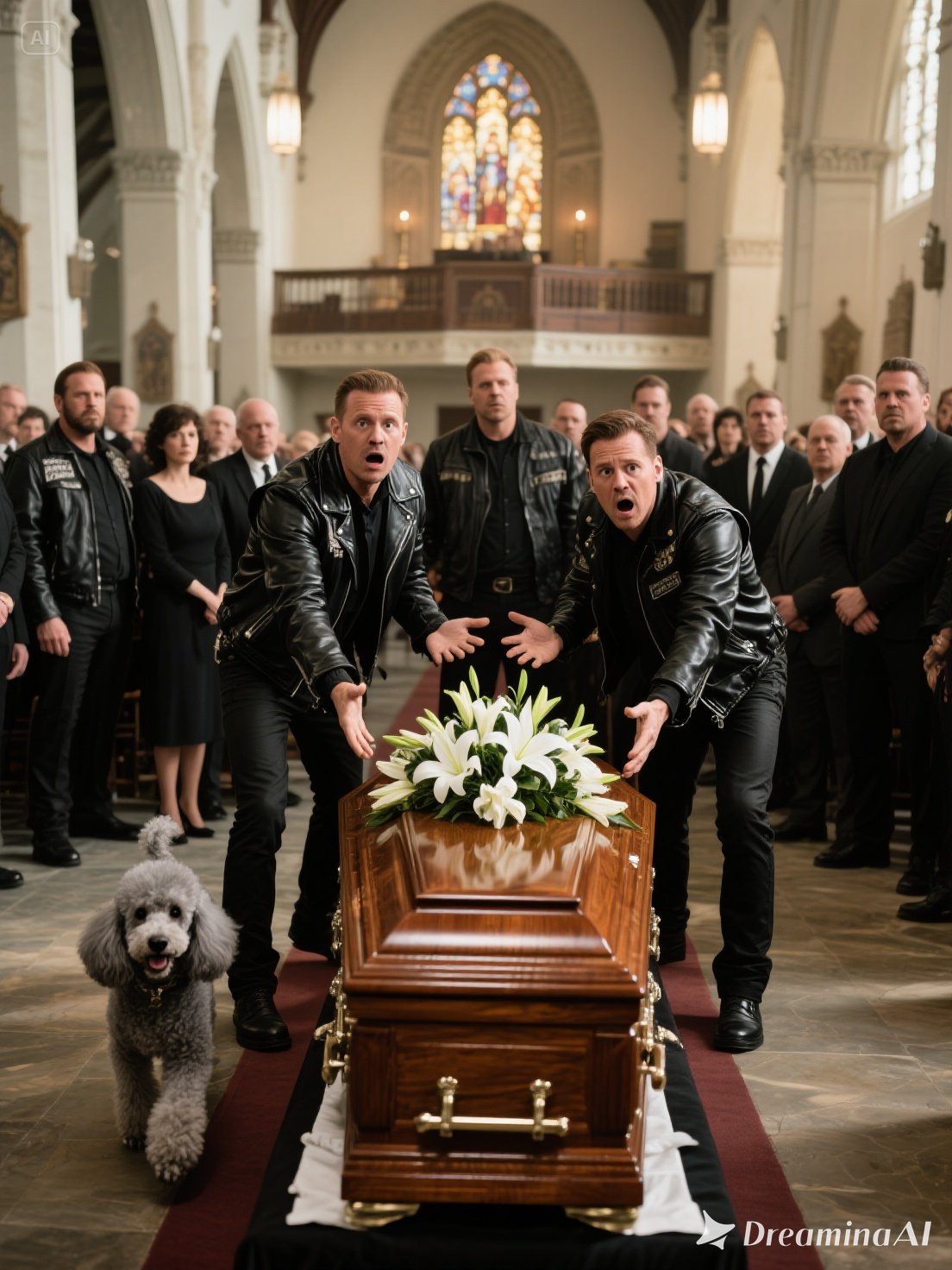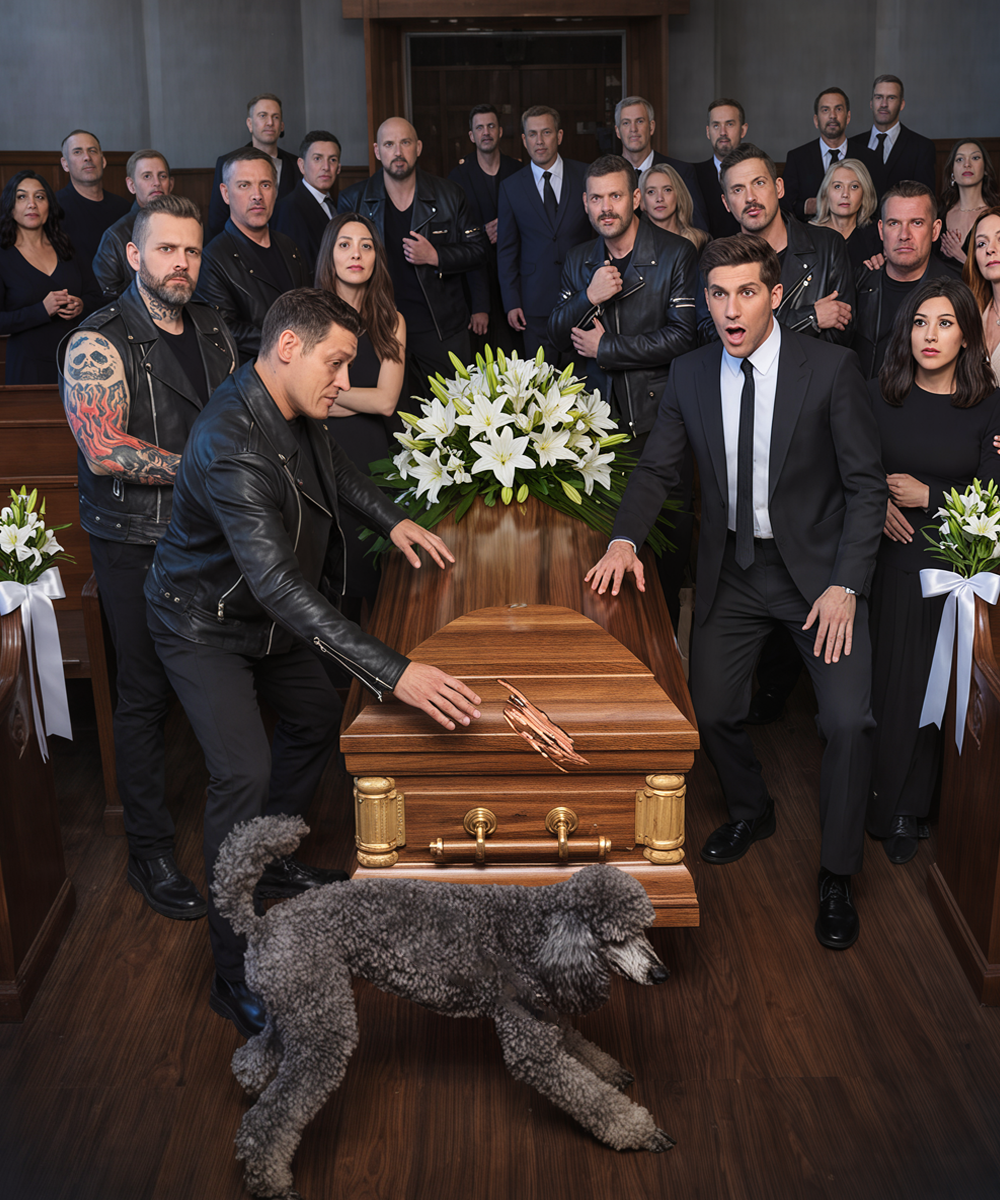 The men from Finn’s motorcycle club stood behind me, leather jackets stiff, faces unreadable. They were supposed to be his family. Yet, as Scrappy’s paws thudded against the wood, I caught something flicker across their eyes. Not sorrow. Not sympathy. Fear.