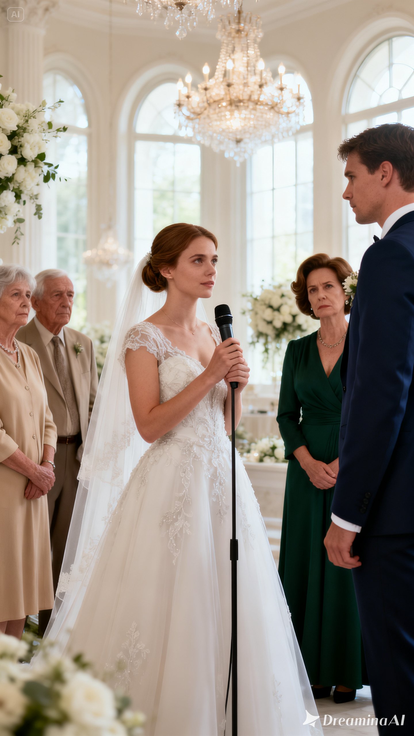 The music from the string quartet seemed to fade around me, as if someone had quietly submerged it beneath water, leaving only a distant, hollow echo somewhere behind my thoughts. Because there are moments when humiliation doesn’t arrive as a loud crash, but as a suffocating silence that swallows everything you believed was certain. Just a minute earlier, I had been standing beneath an arch of white roses at a historic estate overlooking the Hudson River, my veil resting softly on my shoulders, my father’s hand still holding mine with the steady warmth that had guided me through every milestone of my life. I believed—completely, blindly—that I was stepping into something lasting.