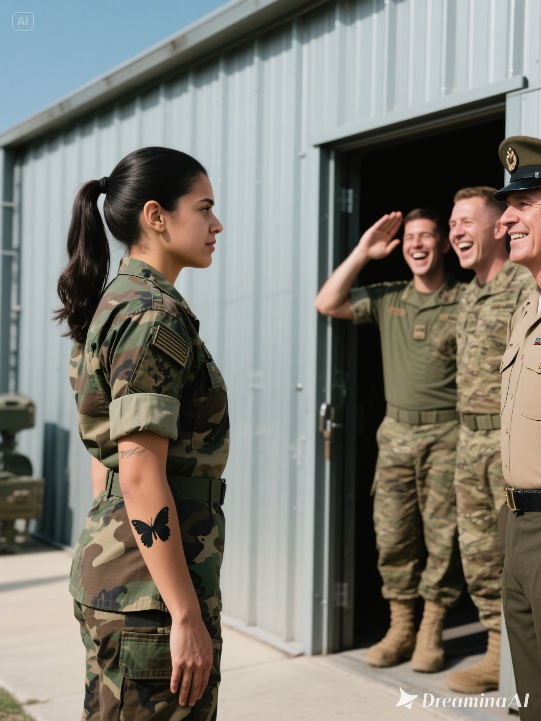 Later, whispers spread across the base. A mocking photo of Abby’s tattoo appeared on the mess hall wall, labeled “Poser.” Senior officers scoffed. Some accused her of stealing symbols she didn’t deserve.