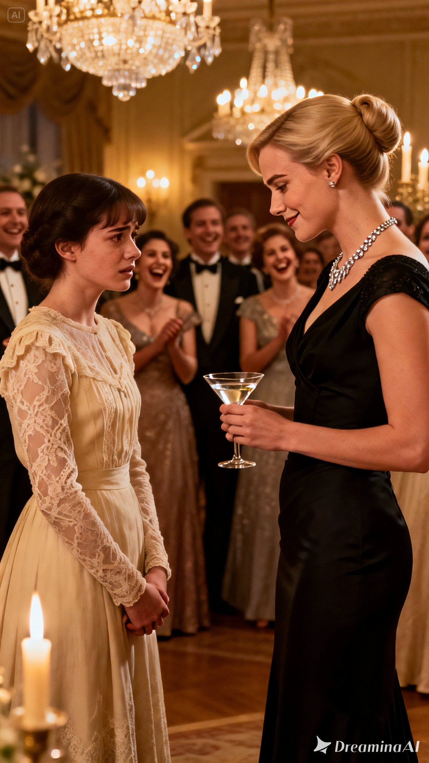 Conversations hesitated. The woman in diamonds turned, irritation flashing. “Yes?”