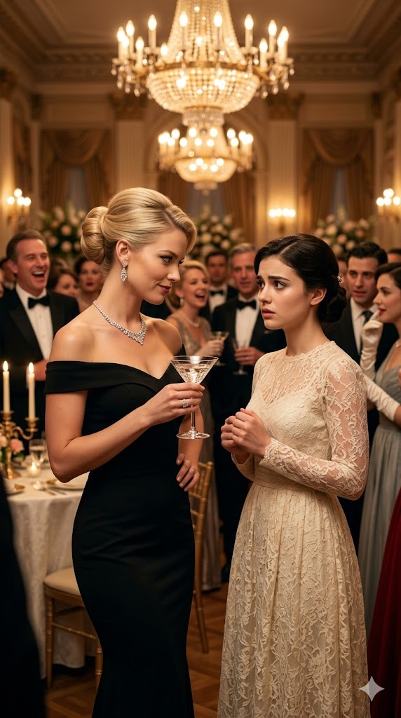 A woman in diamonds noticed immediately—the kind who performed confidence for an audience and thrived on reaction. She lifted her champagne flute and tilted her head.