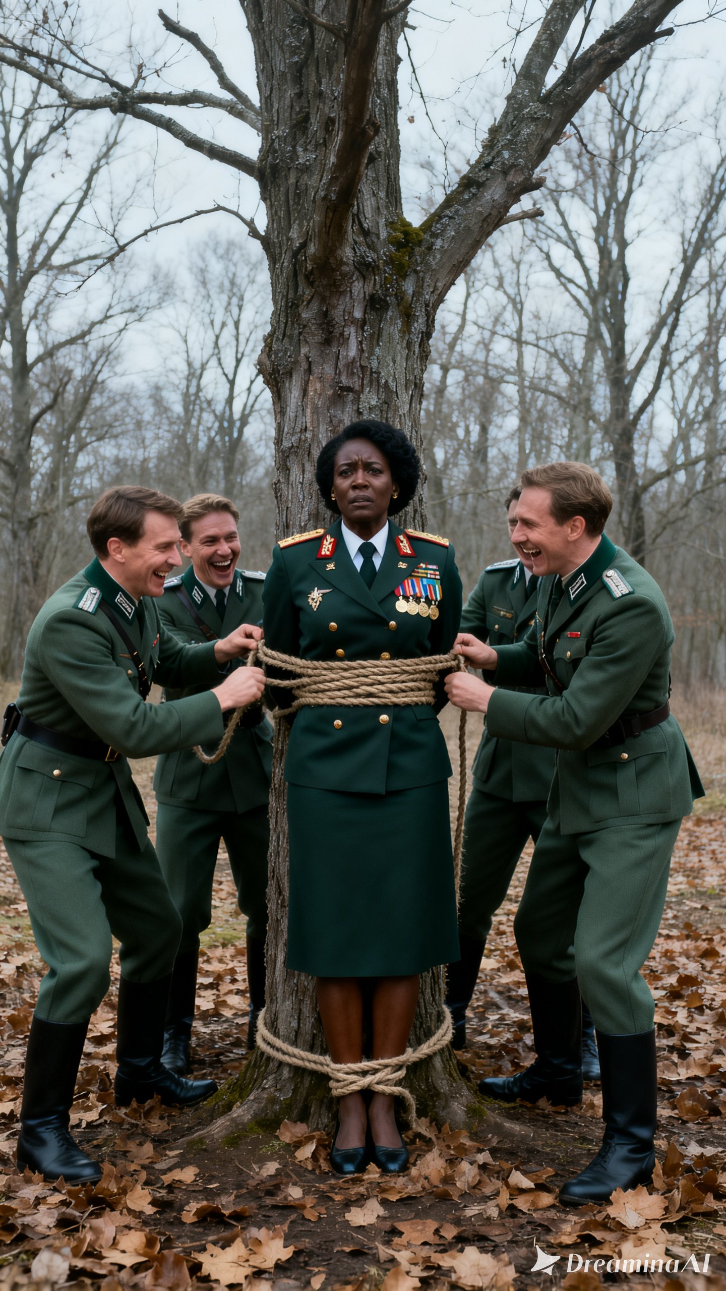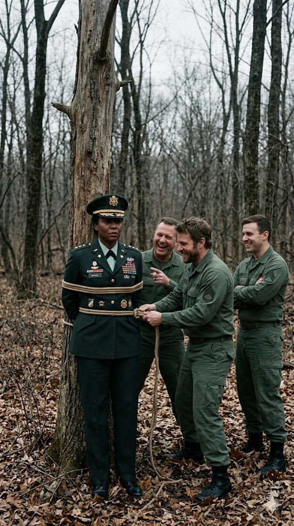 They dragged her twenty feet off the road to a wide oak near the ditch. The bark scratched her back through her coat as they pulled her upright, securing her wrists behind the trunk. Mercer stepped away, breathing hard. Pike stared, daring her rank to matter.