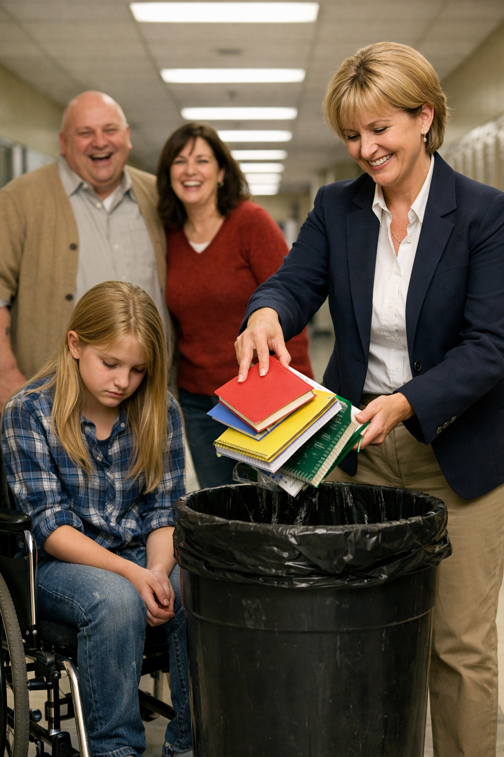 “There,” he said, brushing off his hands. “Now get out of my classroom. And if you tell anyone about this… who exactly are they going to believe? Three respected educators? Or the cripple who draws violent pictures?”