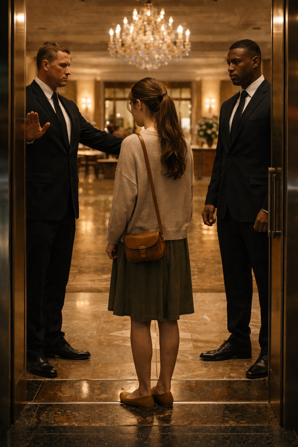 Security folded their arms together, forming a barrier as if she didn’t belong in the same space.