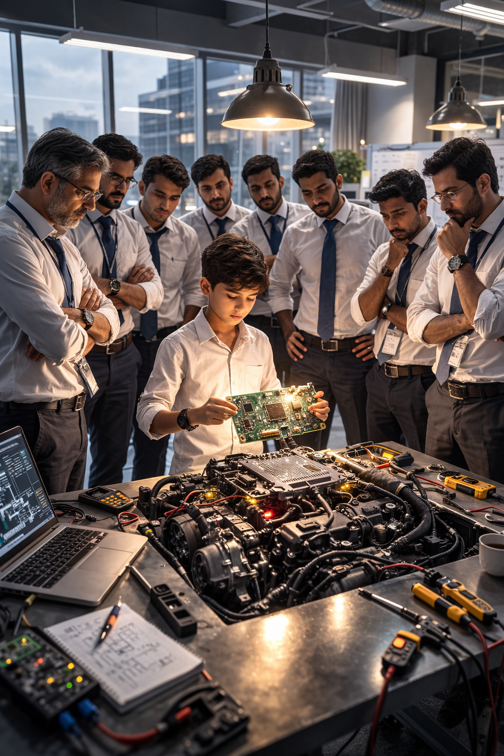 He outlined the propulsion system with a precision far beyond his age. Everything unfolded seamlessly—until the live activation.