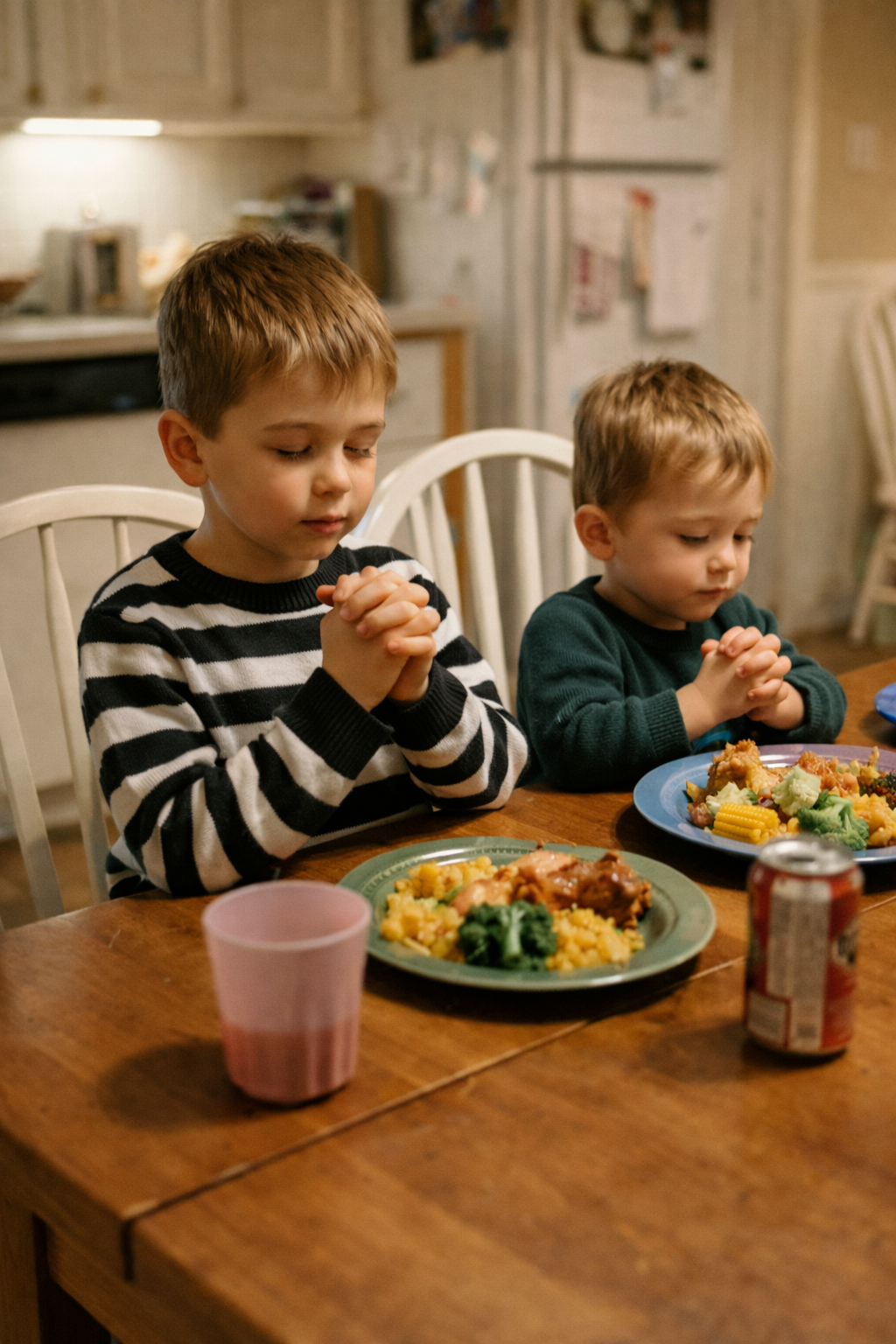 Everyone at the table lowered their heads as the little boy folded his hands and began to pray.