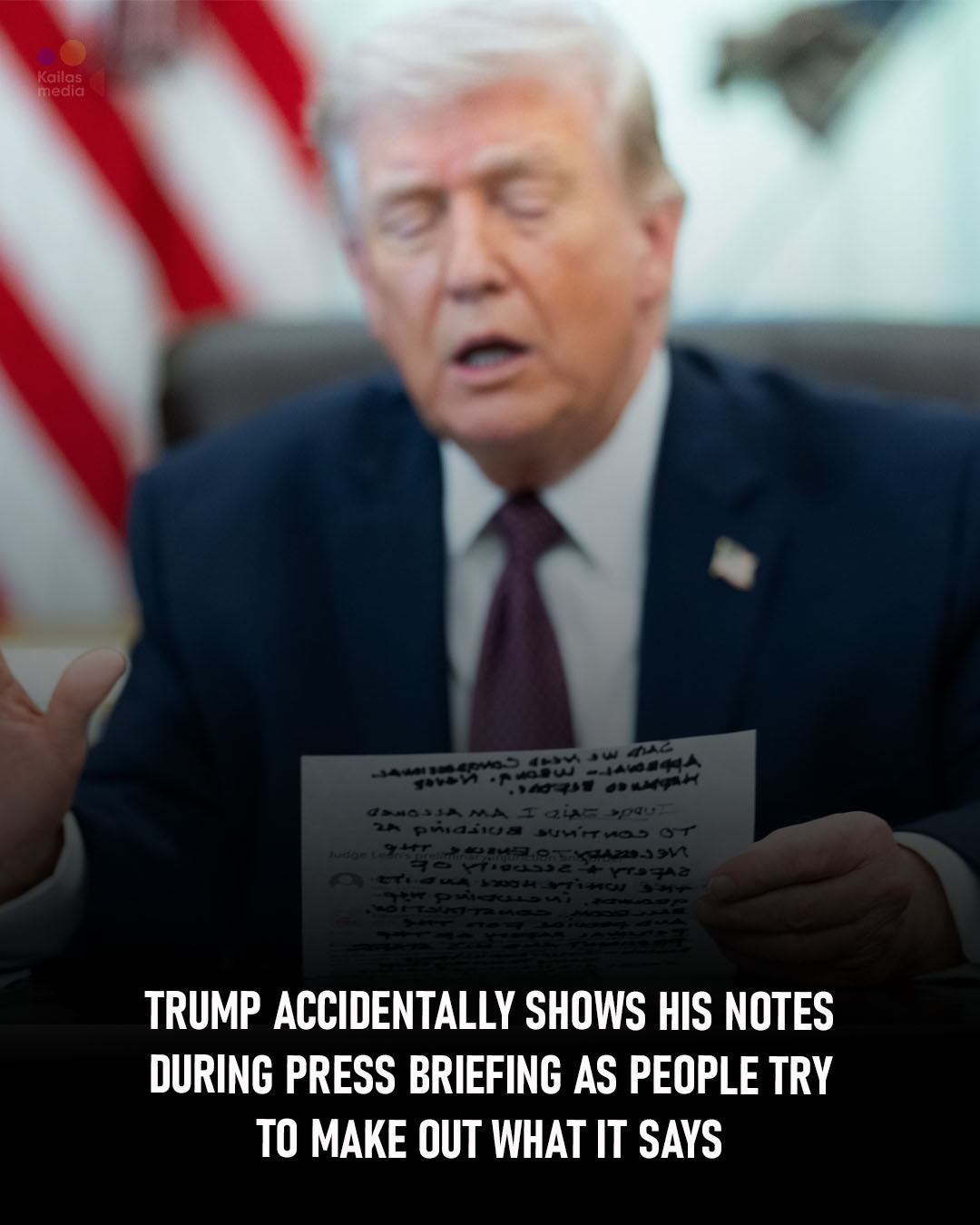 Donald Trump appeared slightly inattentive during a recent Oval Office press briefing after cameras picked up notes that didn’t seem meant for public view.