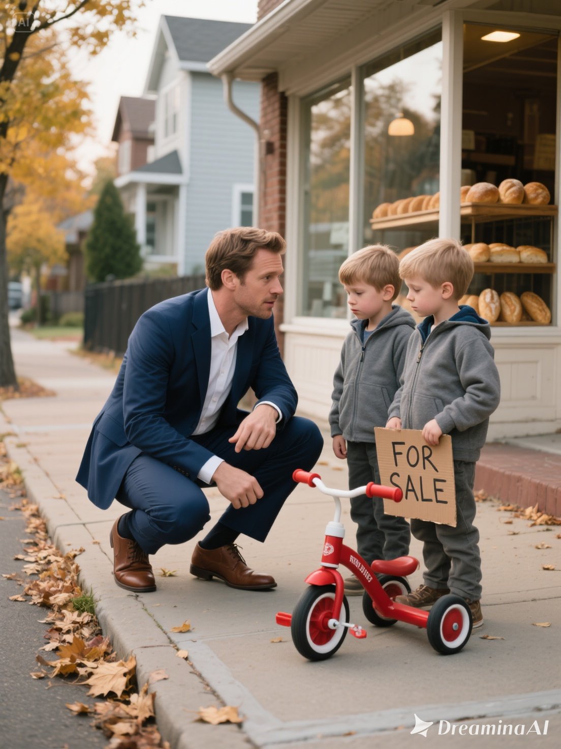 The sidewalk outside the bakery was still, disturbed only by the faint rustling of fallen leaves.