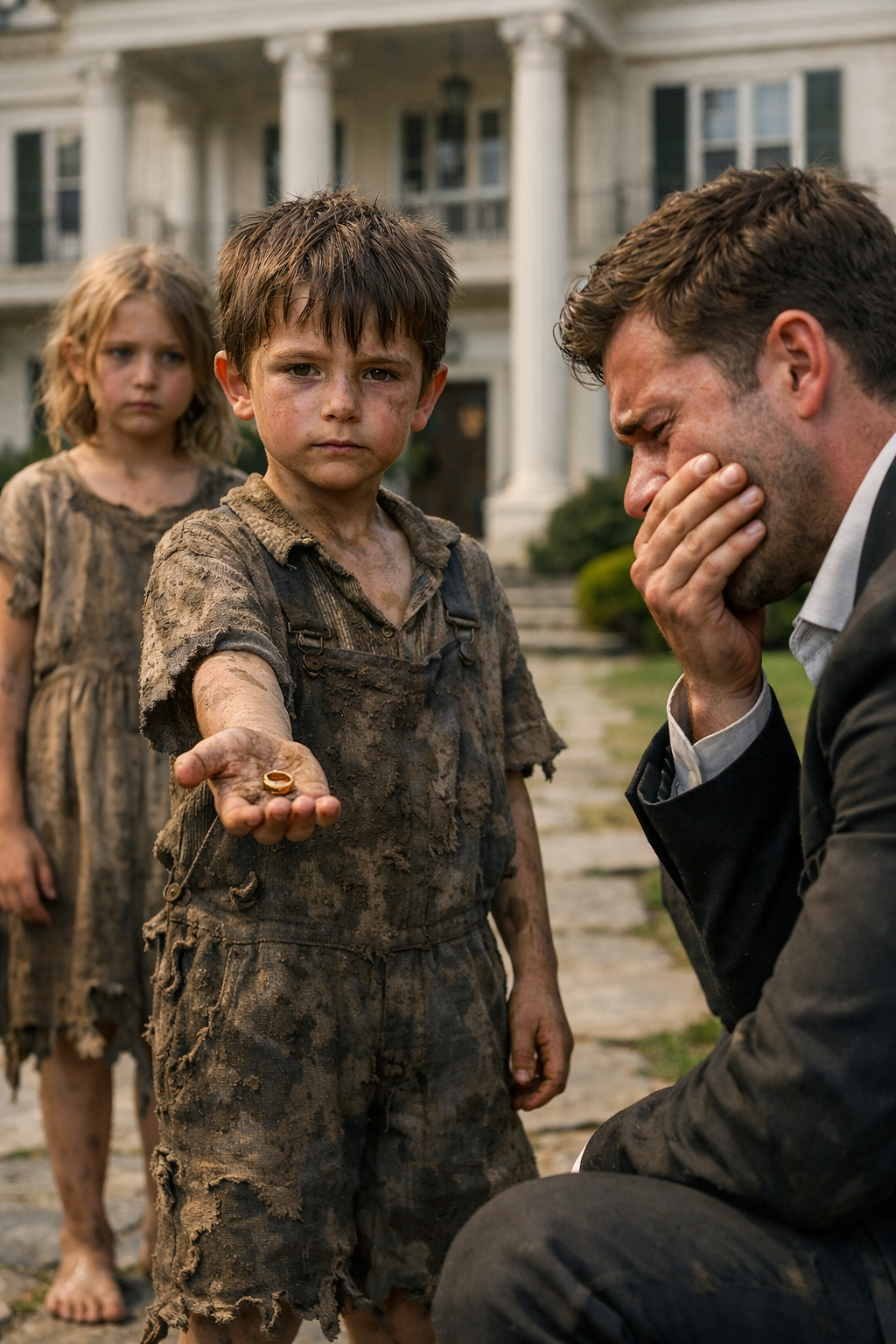 He studied the two children through narrowed eyes before beginning the slow descent down the mansion’s stone staircase.