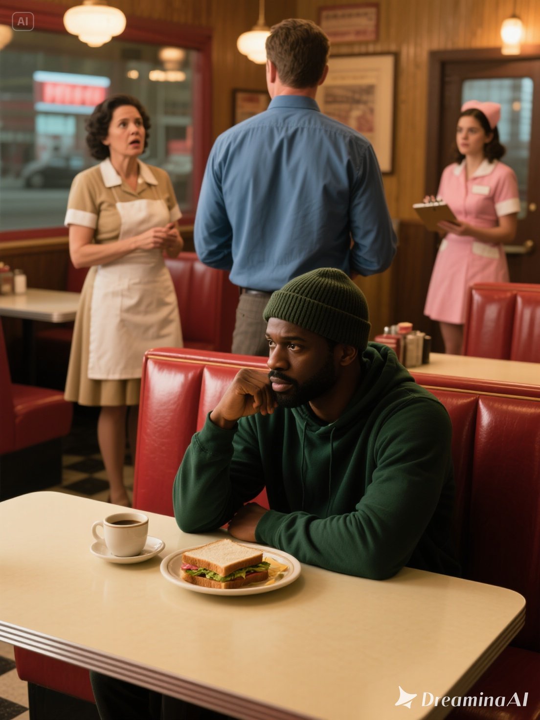 Jordan rose slowly, sandwich untouched, and walked toward the counter.