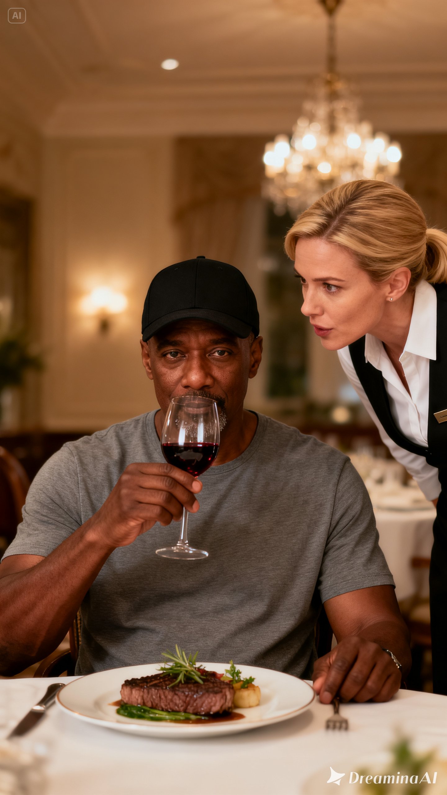 The steak arrived faster than expected, properly cooked and still warm, suggesting the kitchen still held some pride. But something still felt off. Jenna returned with her eyes lowered, refilled his coffee, and placed the check on the table with a folded receipt tucked inside.