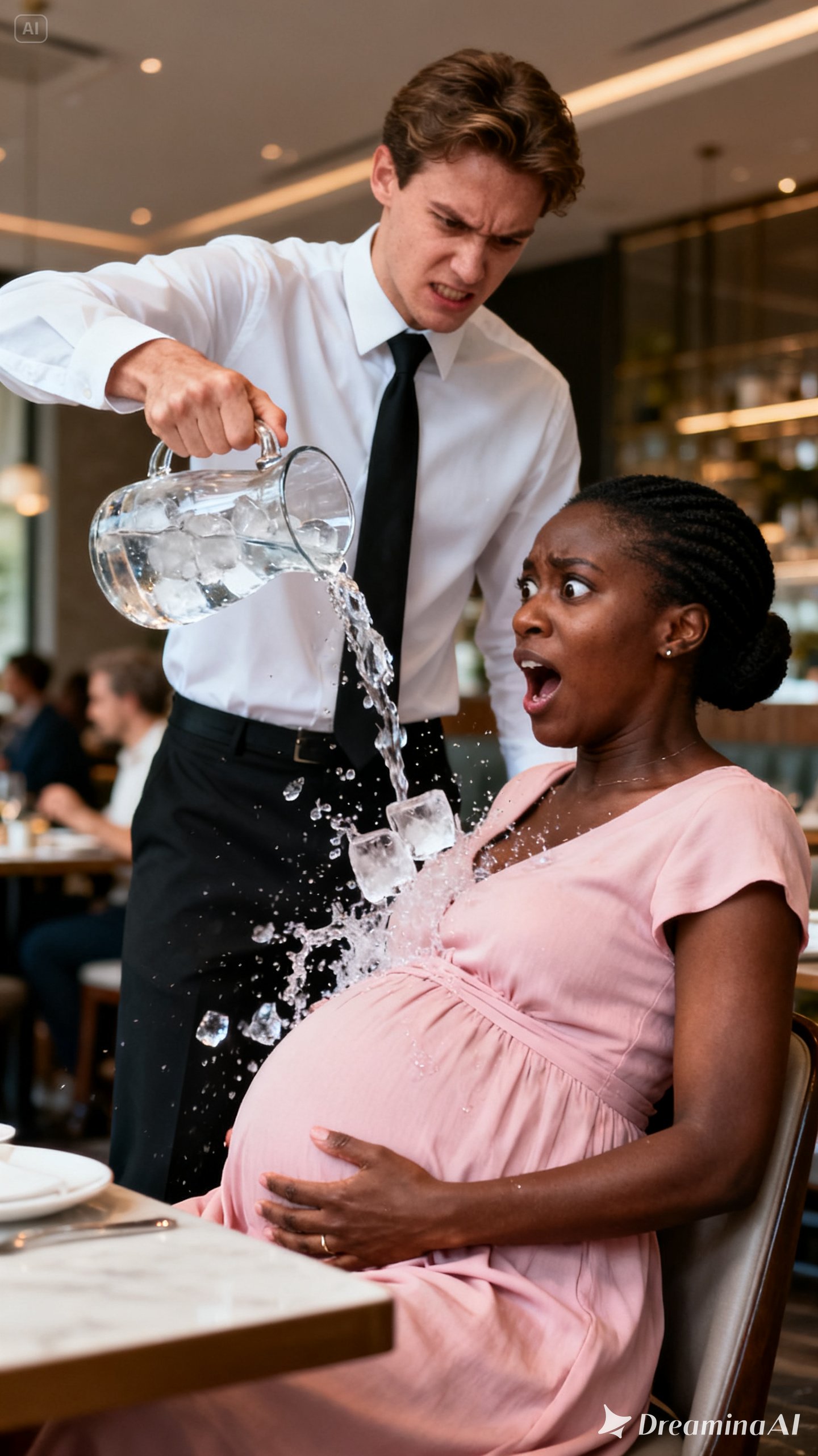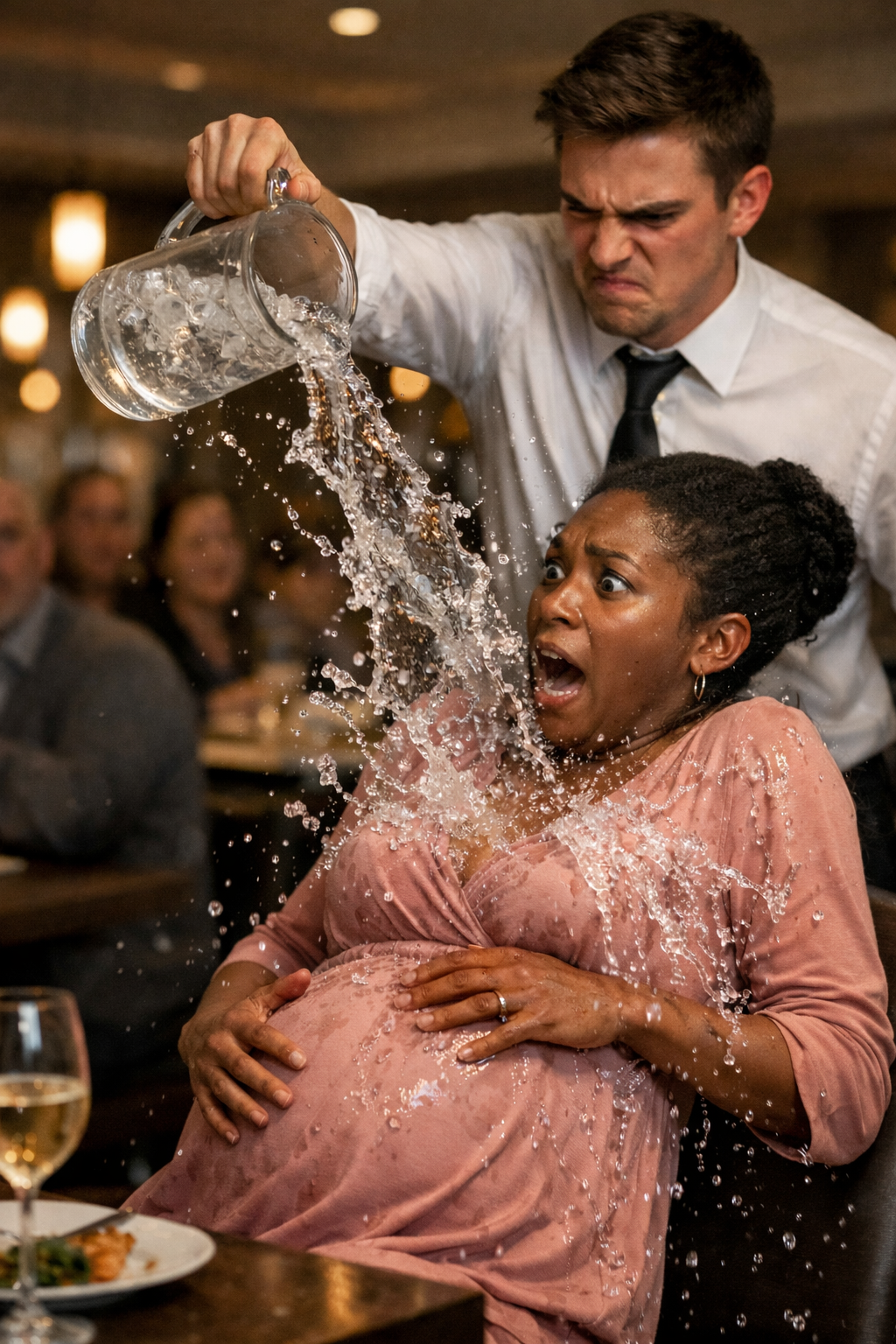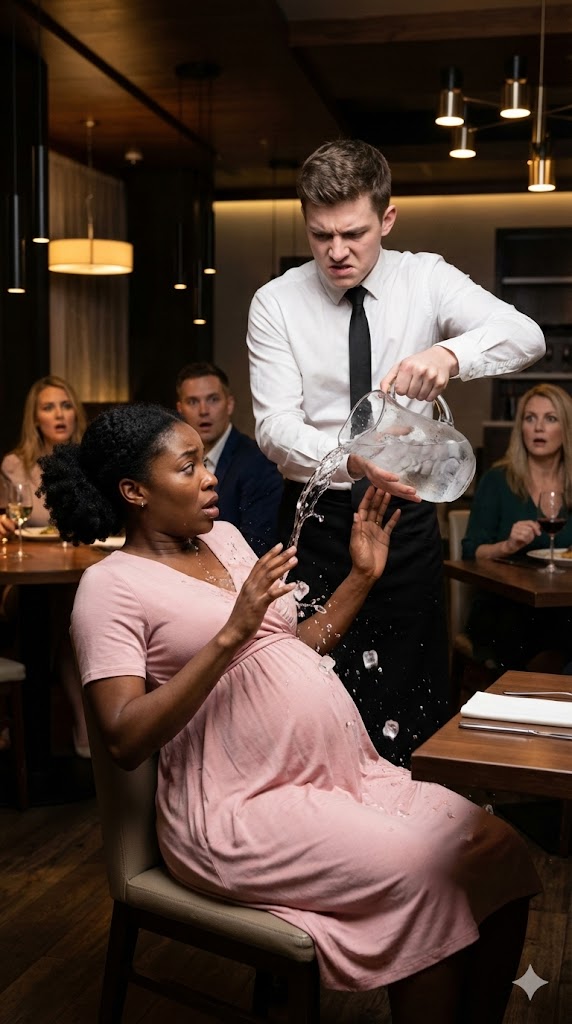 I gasped as the icy liquid soaked through the silk of my maternity dress, dripping down my legs, pooling in my heels. A cube of ice slid down my neckline, pressing against my skin.