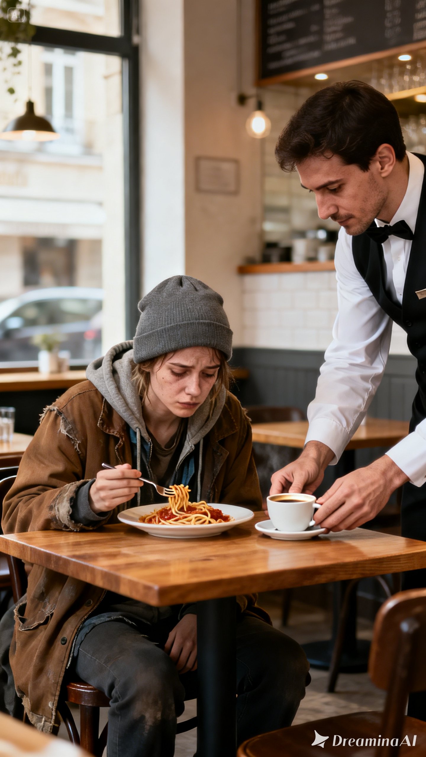 Inside, the air smelled of roasted meat and warm bread. It hit me so hard my eyes filled with tears. I looked around, pretending I was waiting for someone, but really, I was watching the tables people had just left behind.